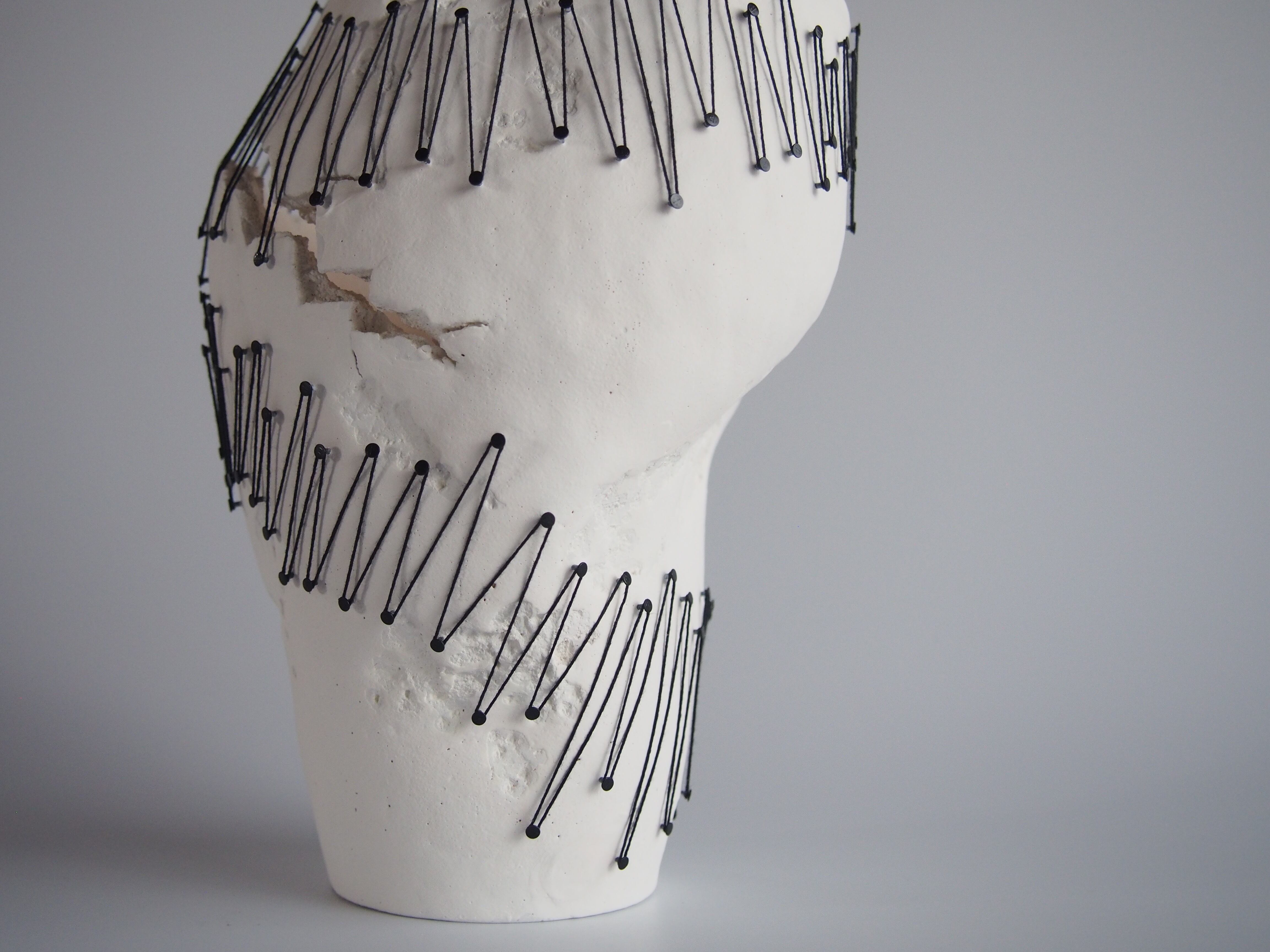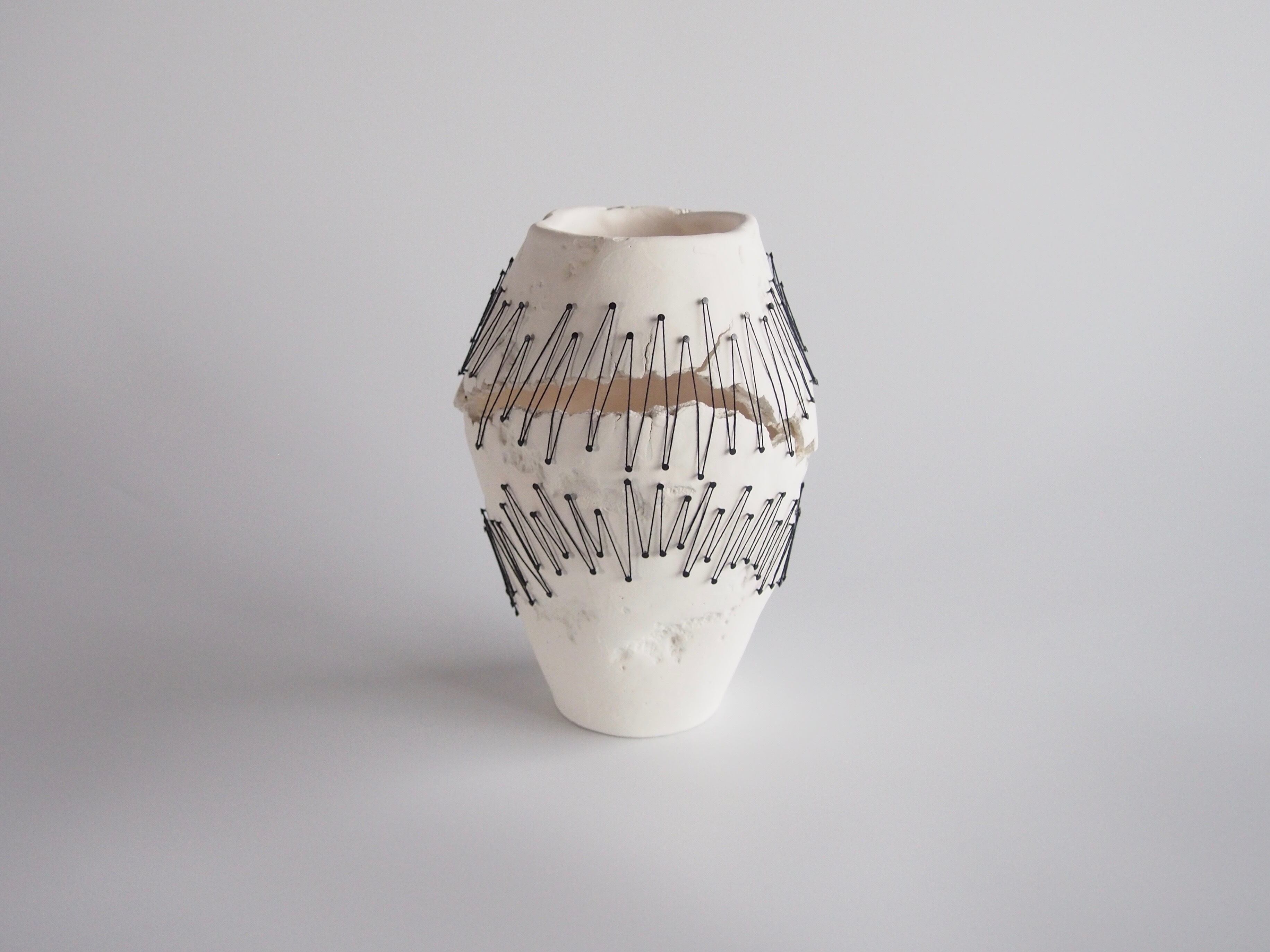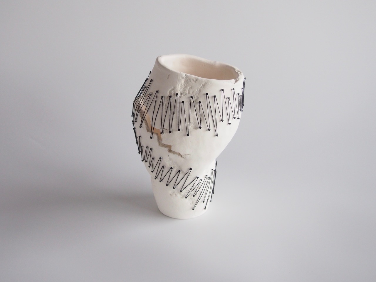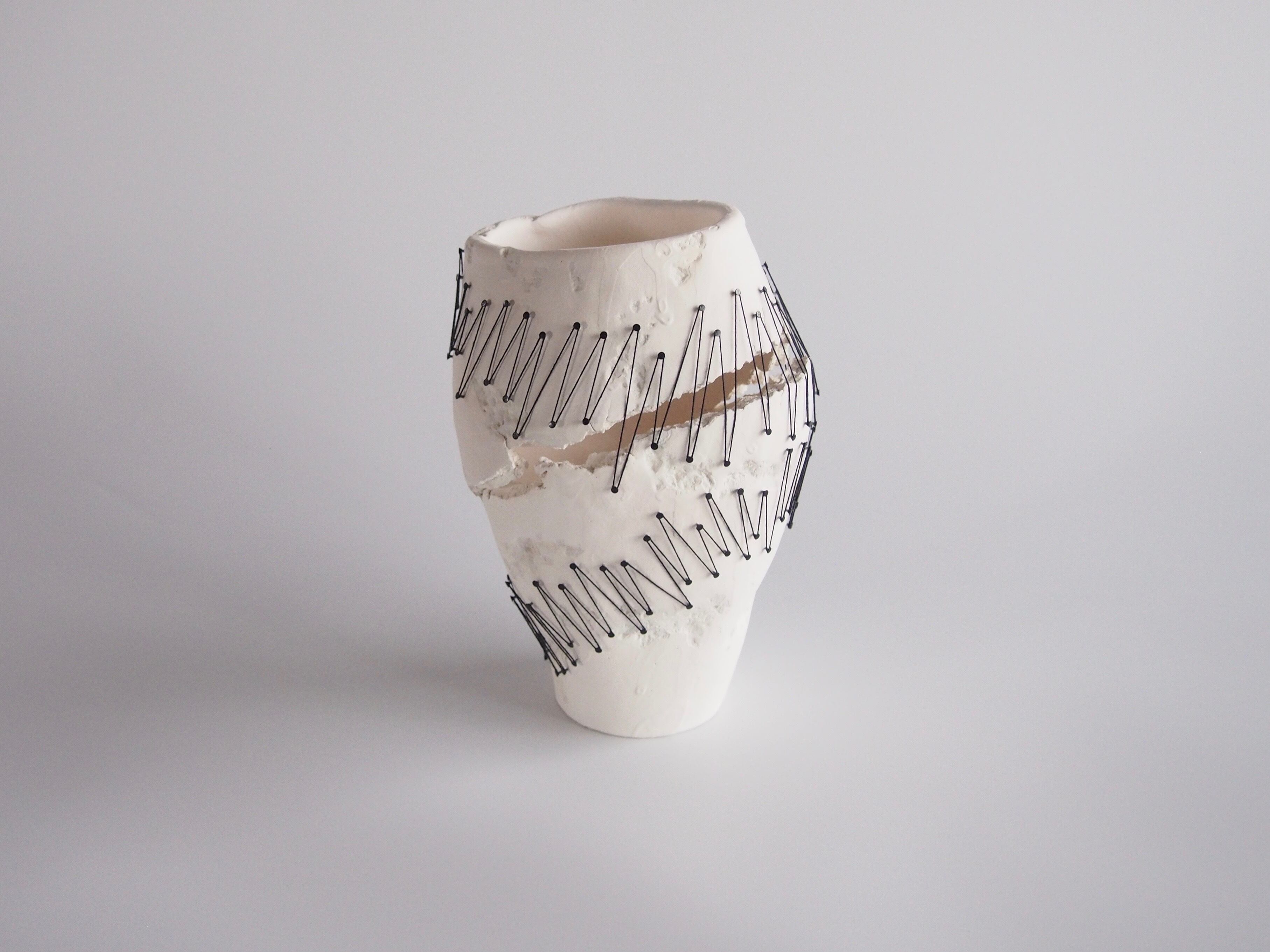 纏う、繕う、繋ぐ、縛る。うつわと糸の関係をどう捉えるかでまた作品の見え方は変わってくると思います。ご鑑賞いただく方がそれぞれの解釈で楽しんで頂けましたら幸いです。