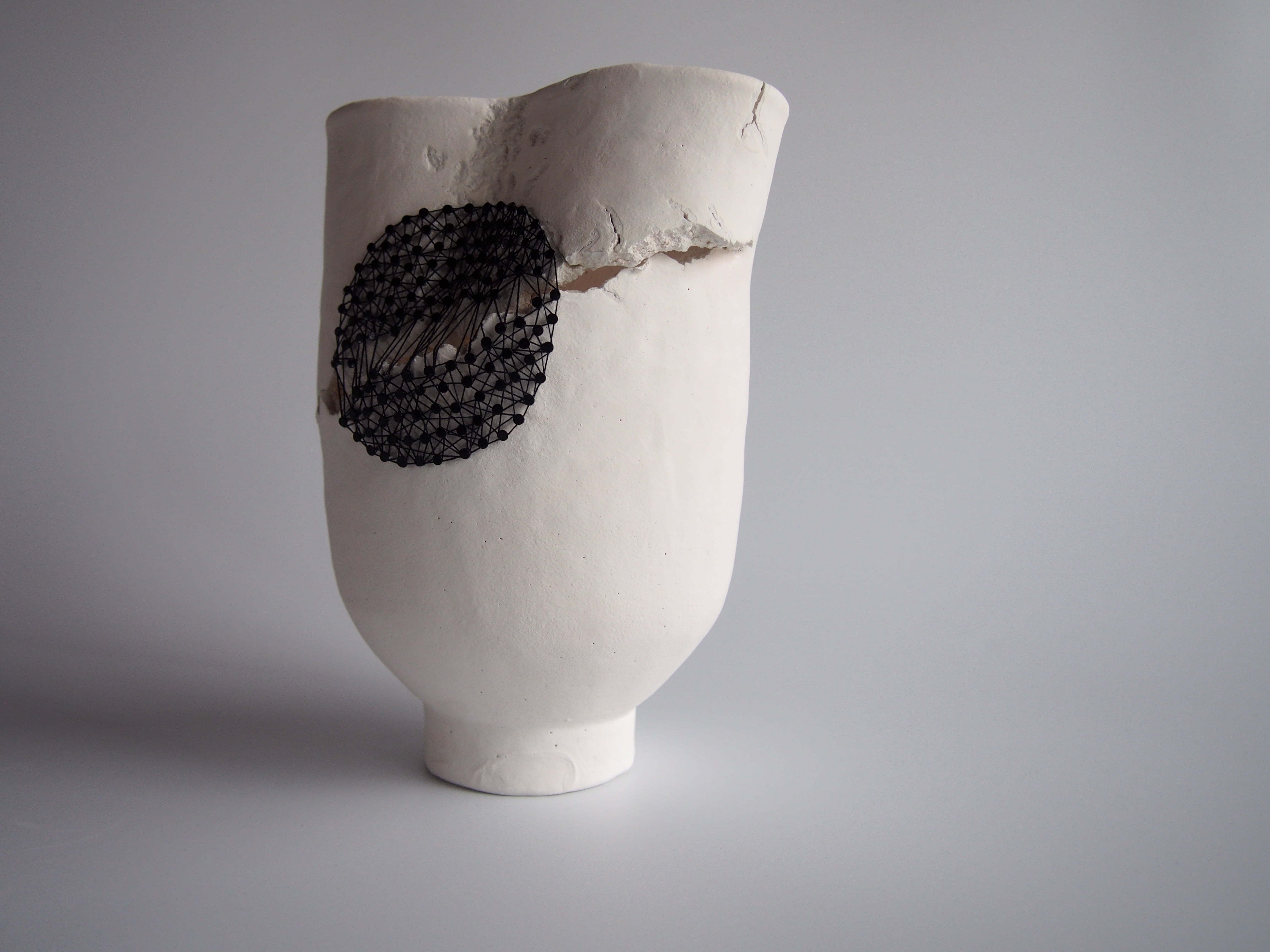 纏う、繕う、繋ぐ、縛る。うつわと糸の関係をどう捉えるかでまた作品の見え方は変わってくると思います。ご鑑賞いただく方がそれぞれの解釈で楽しんで頂けましたら幸いです。