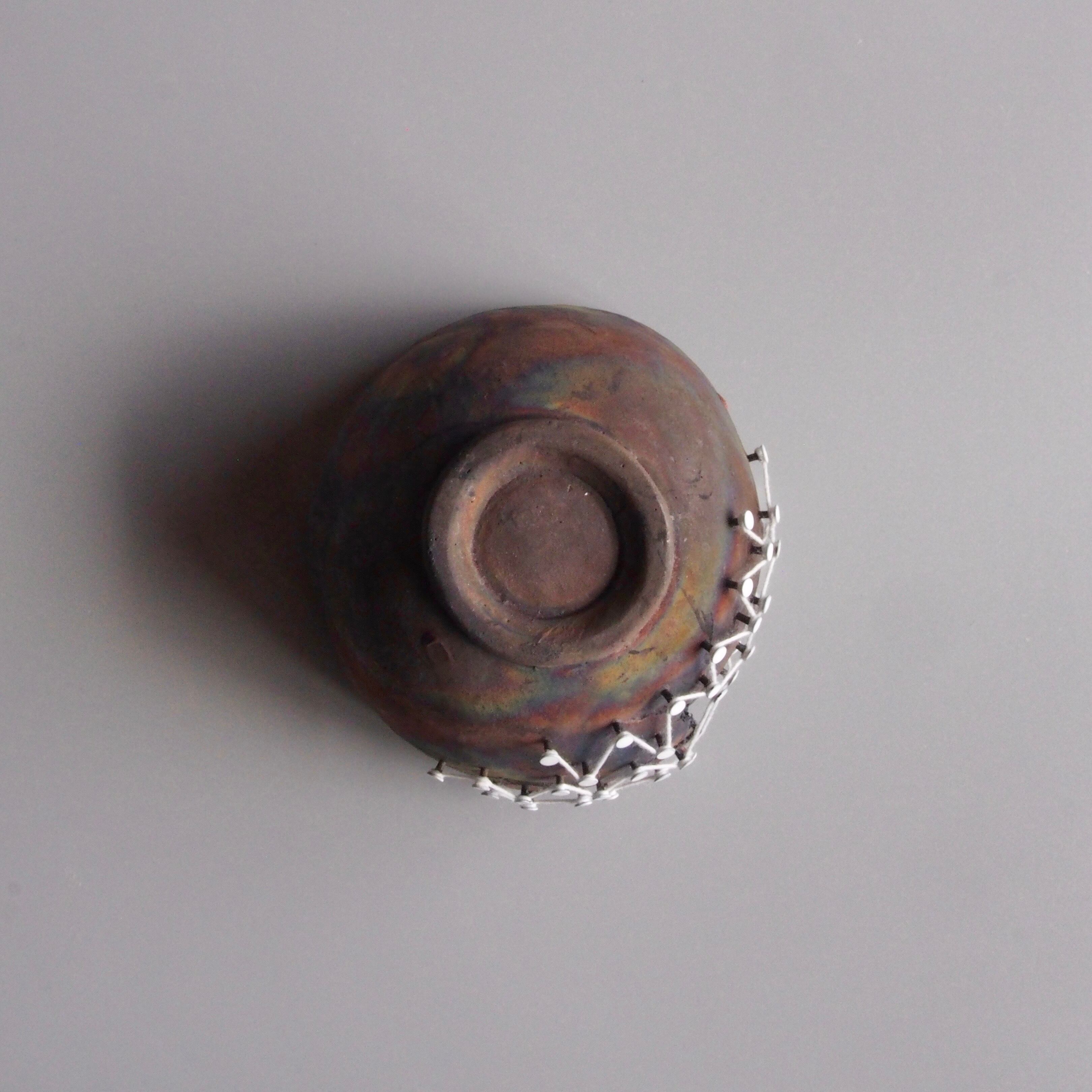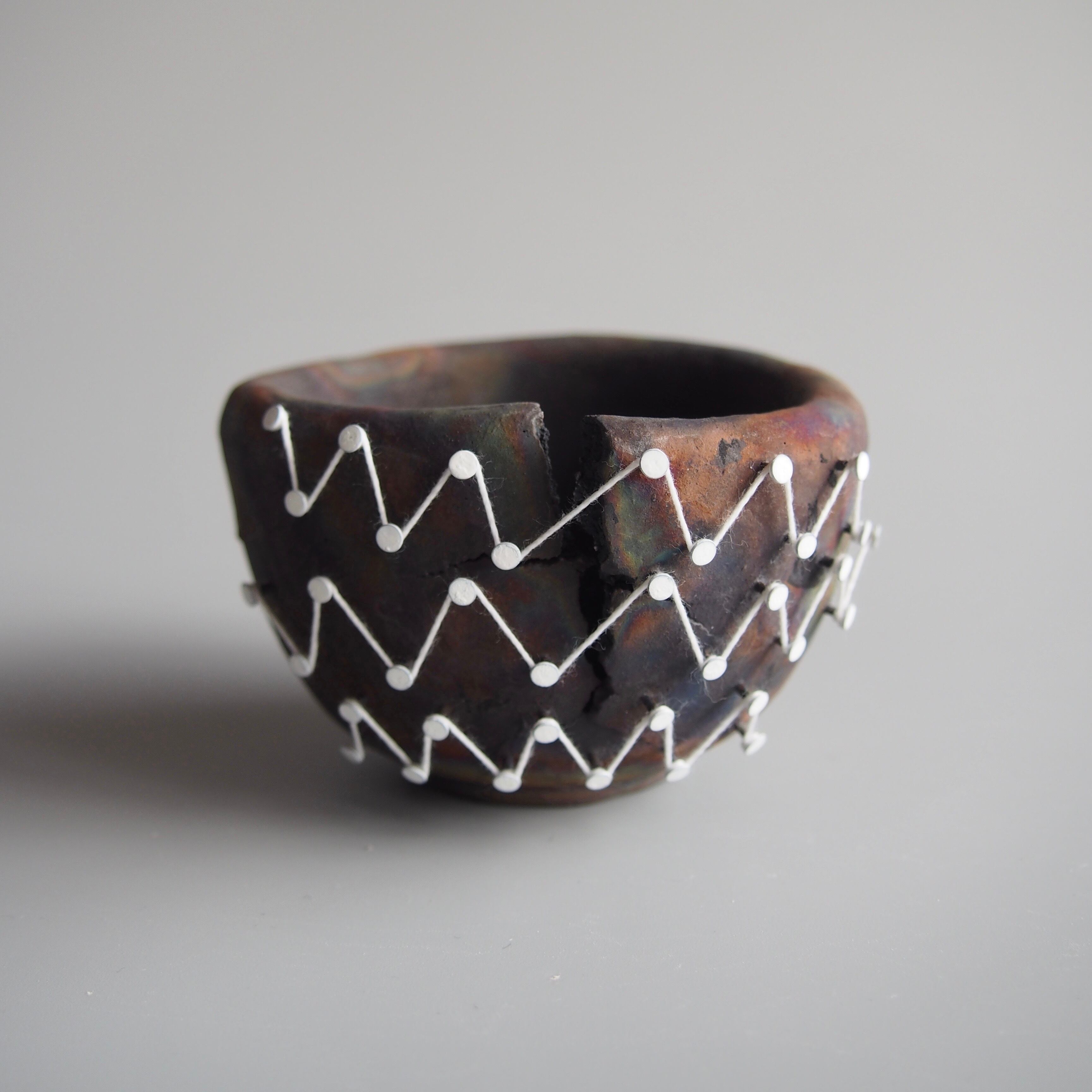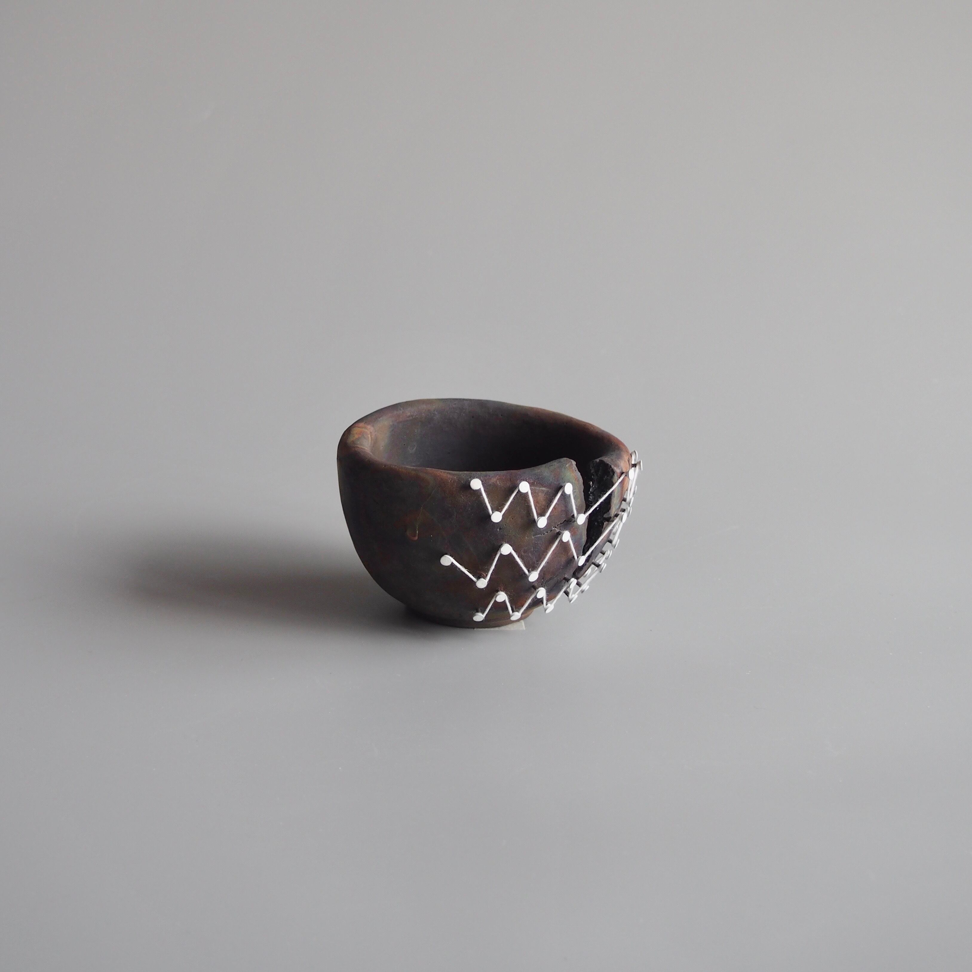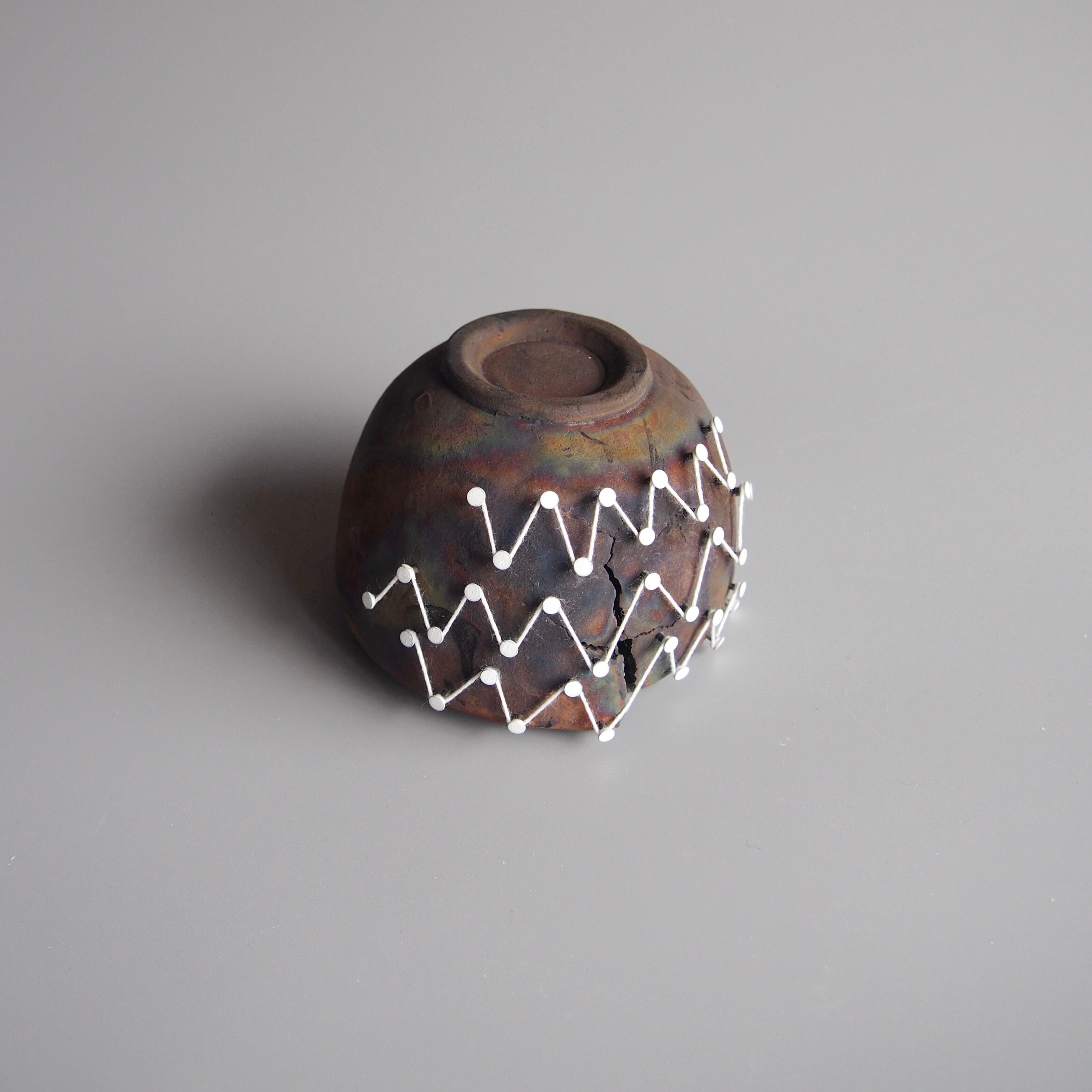 纏う、繕う、繋ぐ、縛る。器と糸の関係をどう捉えるかで作品の見え方は変わってくると思います。ご鑑賞いただく方それぞれの解釈で楽しんで頂けましたら幸いです。