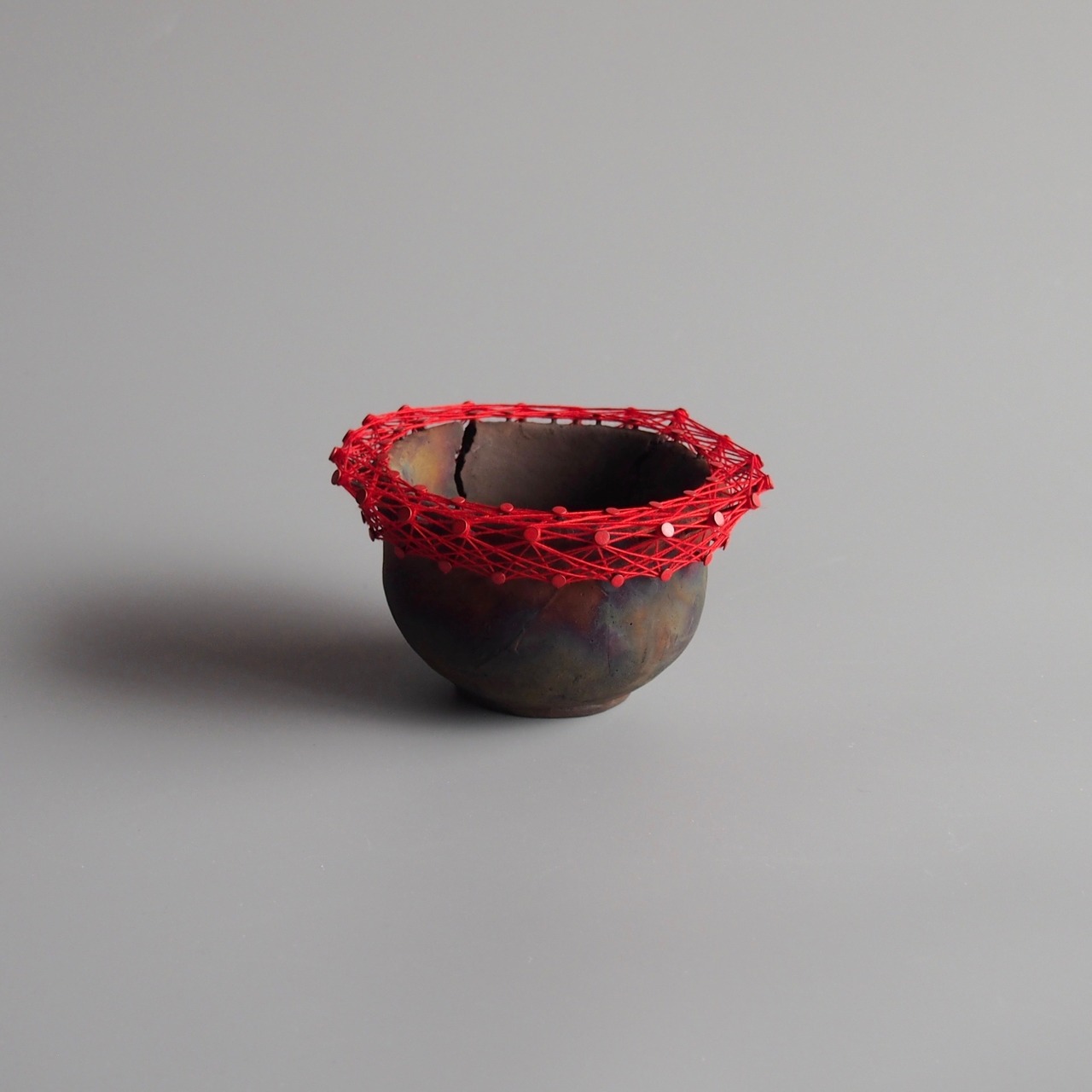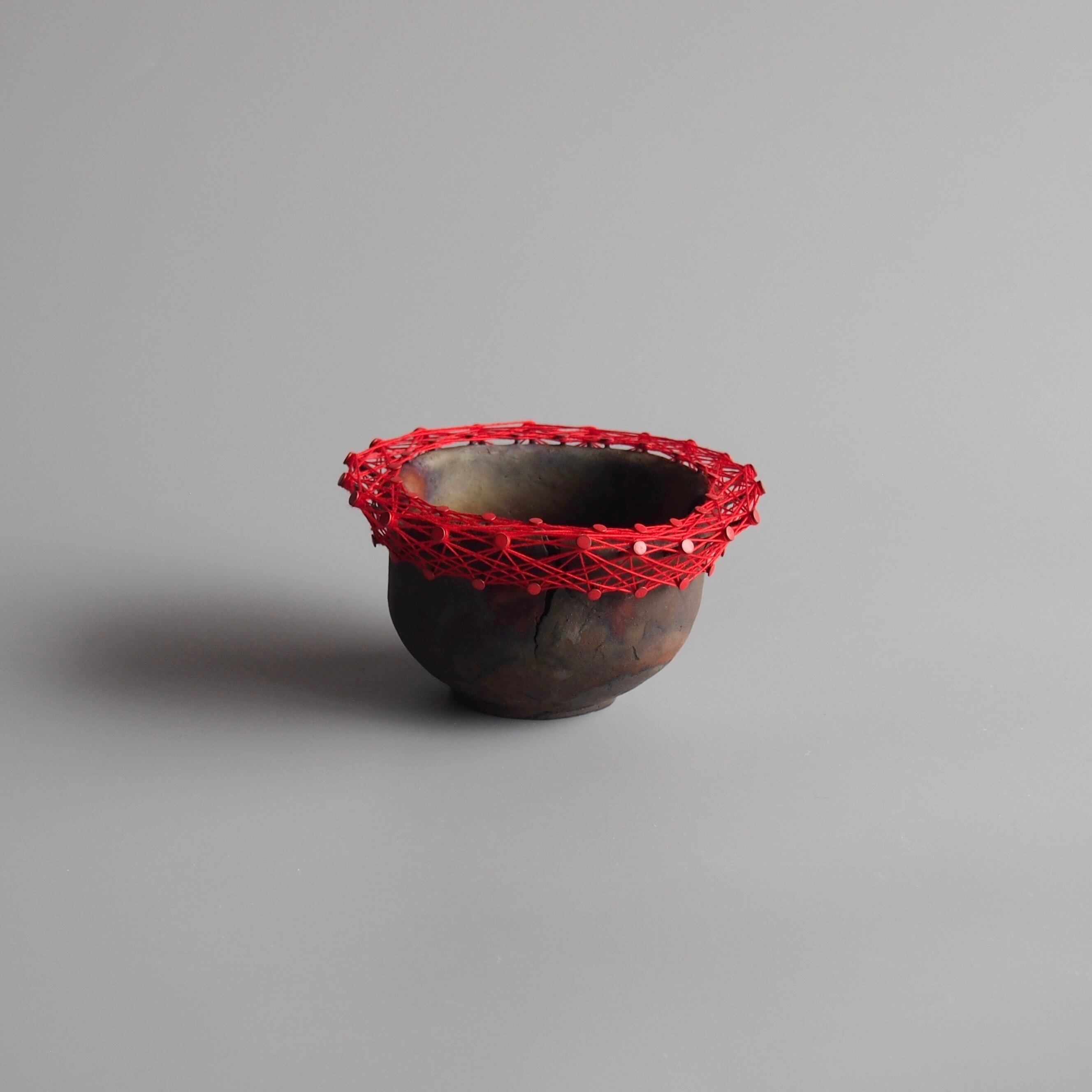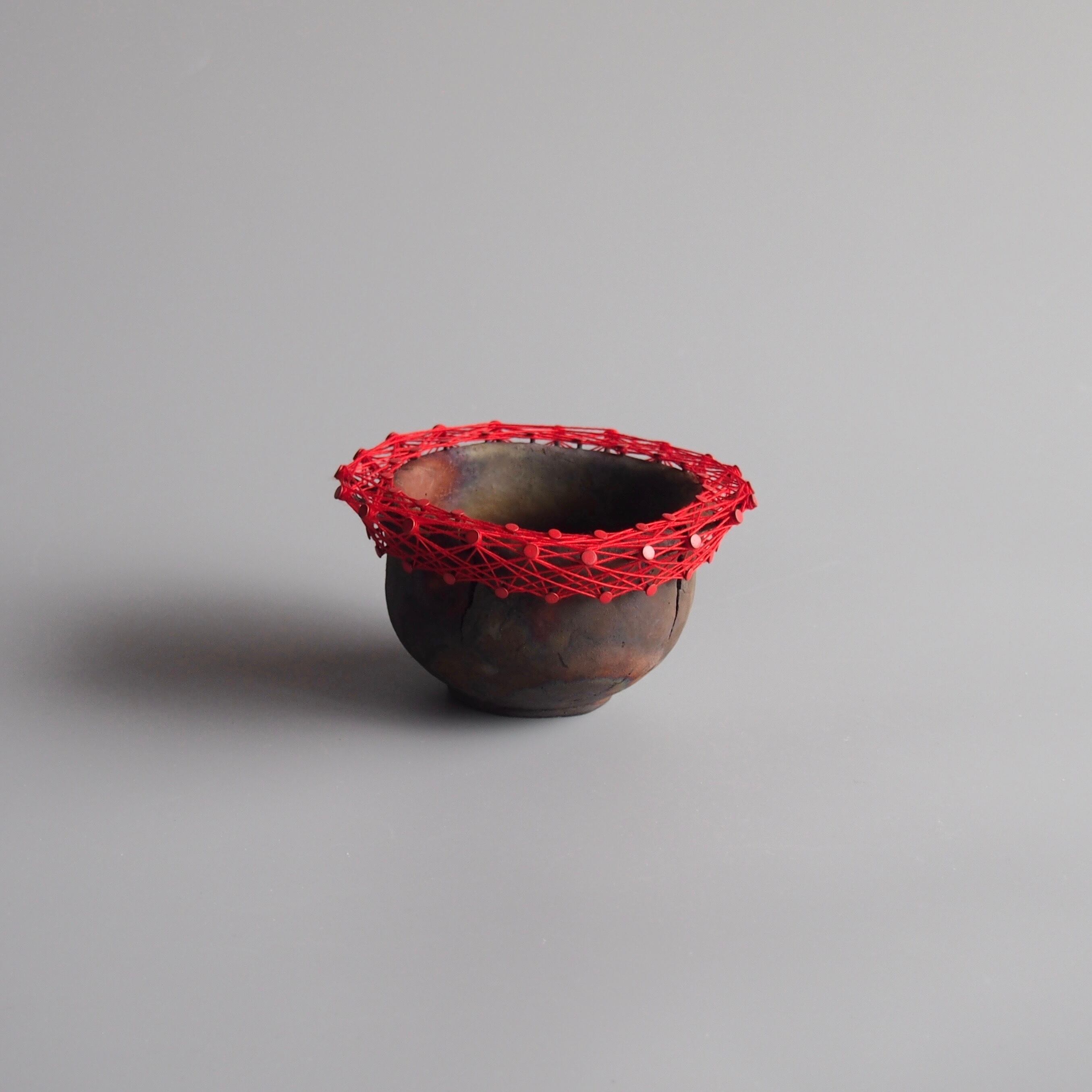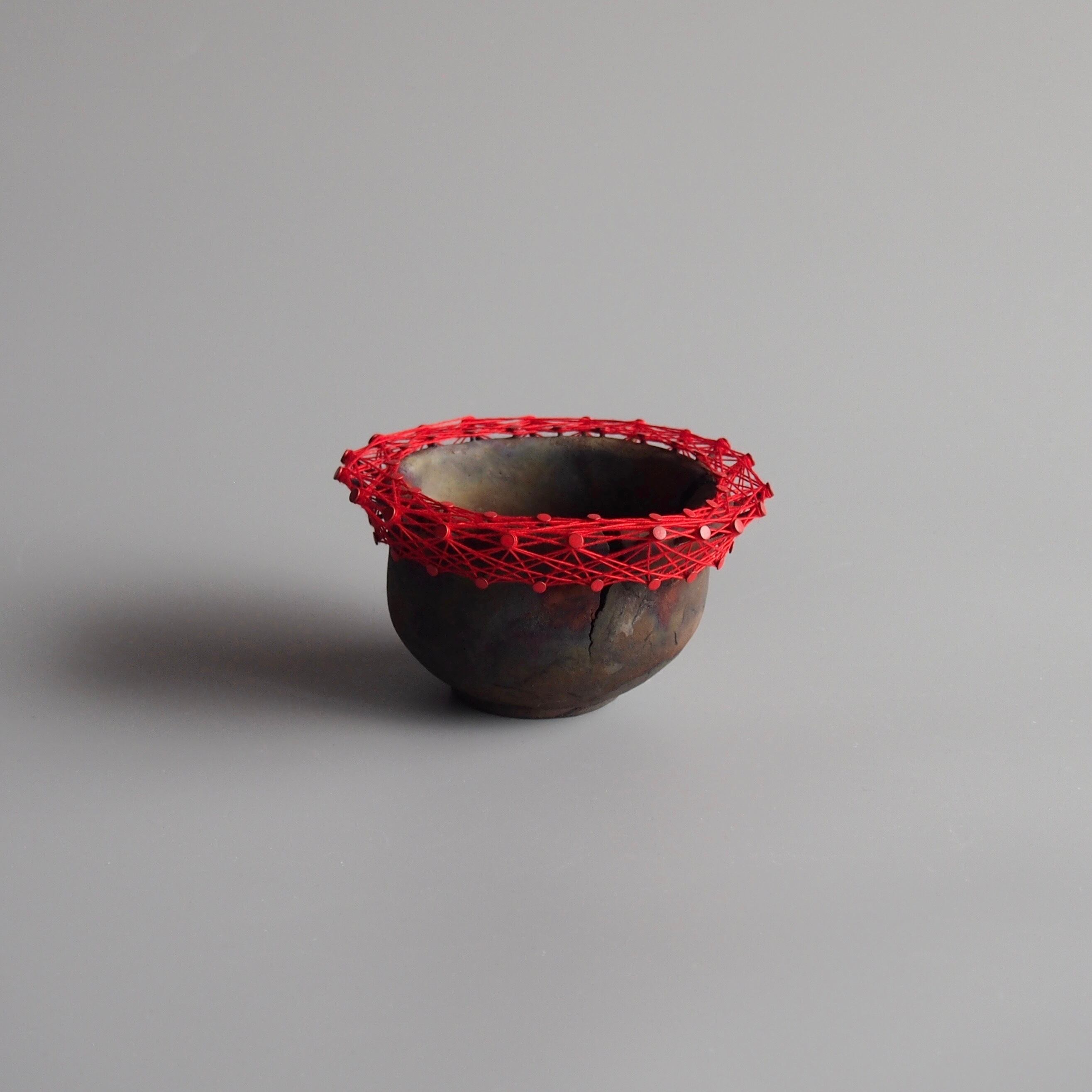 纏う、繕う、繋ぐ、縛る。器と糸の関係をどう捉えるかで作品の見え方は変わってくると思います。ご鑑賞いただく方それぞれの解釈で楽しんで頂けましたら幸いです。