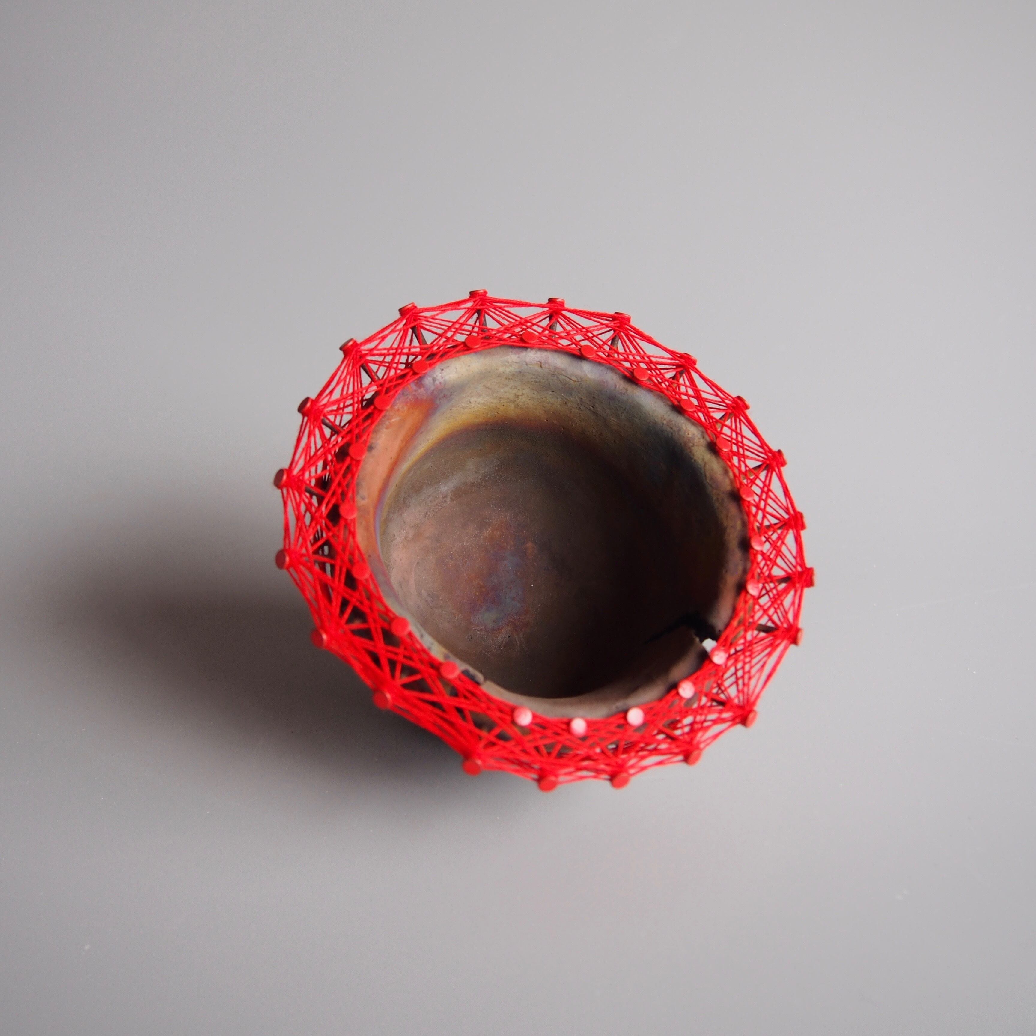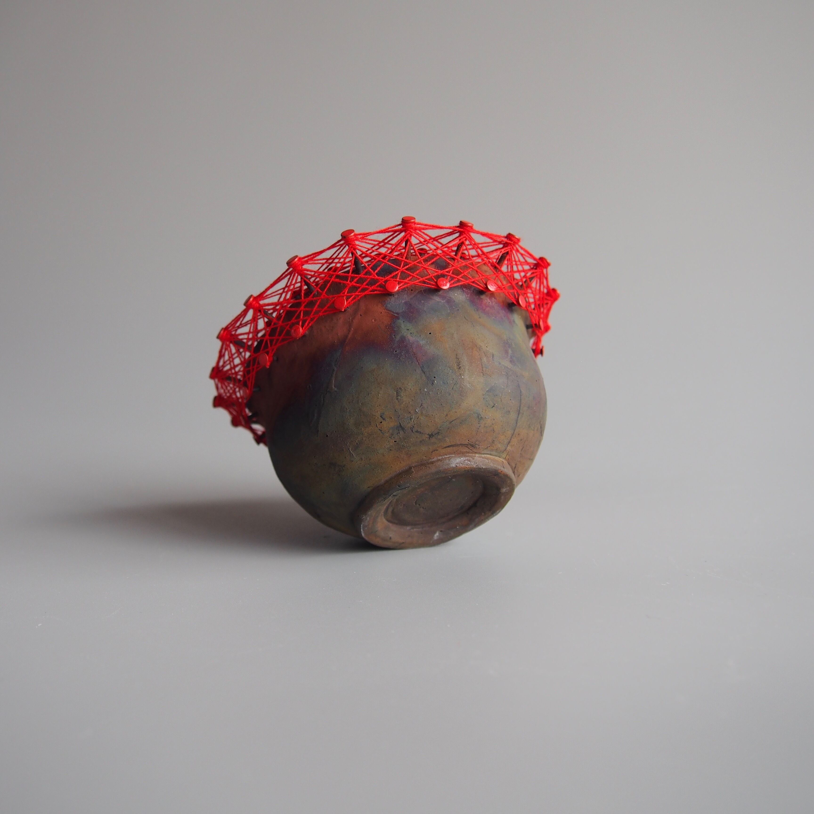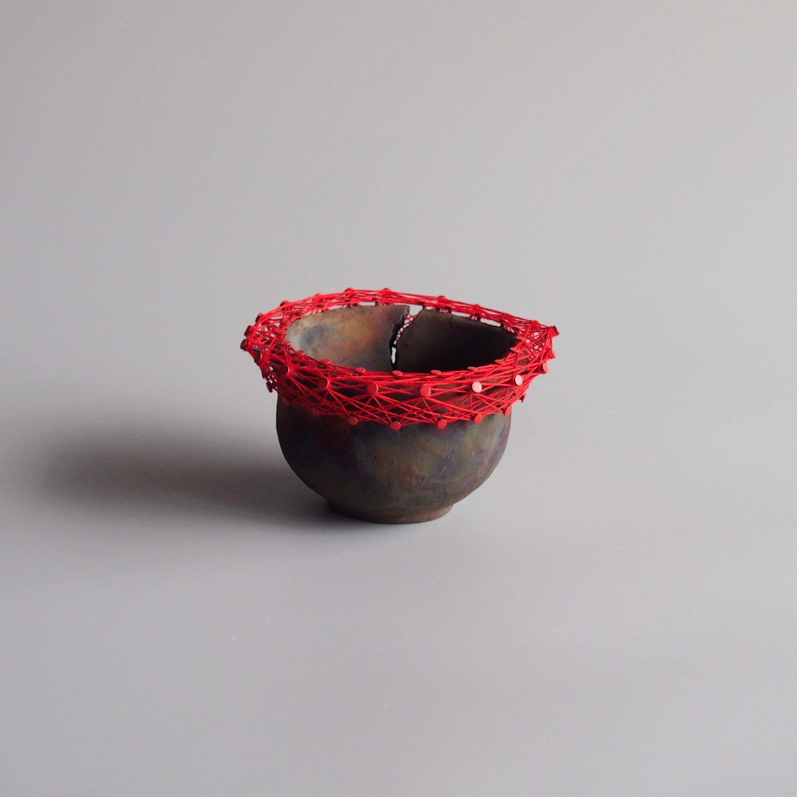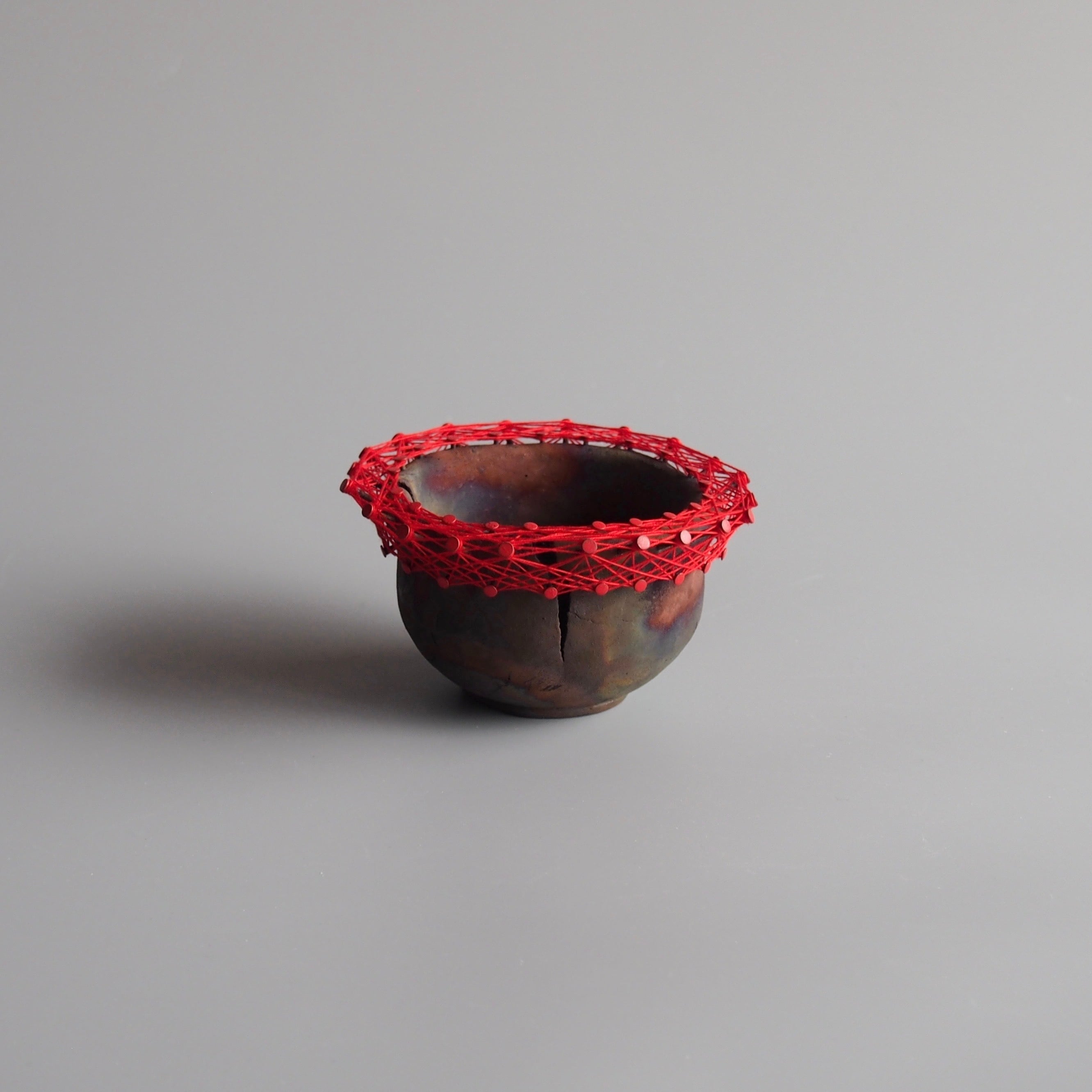 纏う、繕う、繋ぐ、縛る。器と糸の関係をどう捉えるかで作品の見え方は変わってくると思います。ご鑑賞いただく方それぞれの解釈で楽しんで頂けましたら幸いです。