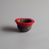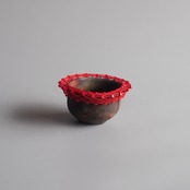 「装う」をテーマしたdressシリーズは、器(うつわ)と糸を身体と衣服の関係になぞらえ、土と異素材を組み合わせることで陶芸作品における新しい「装い」を表現しています。