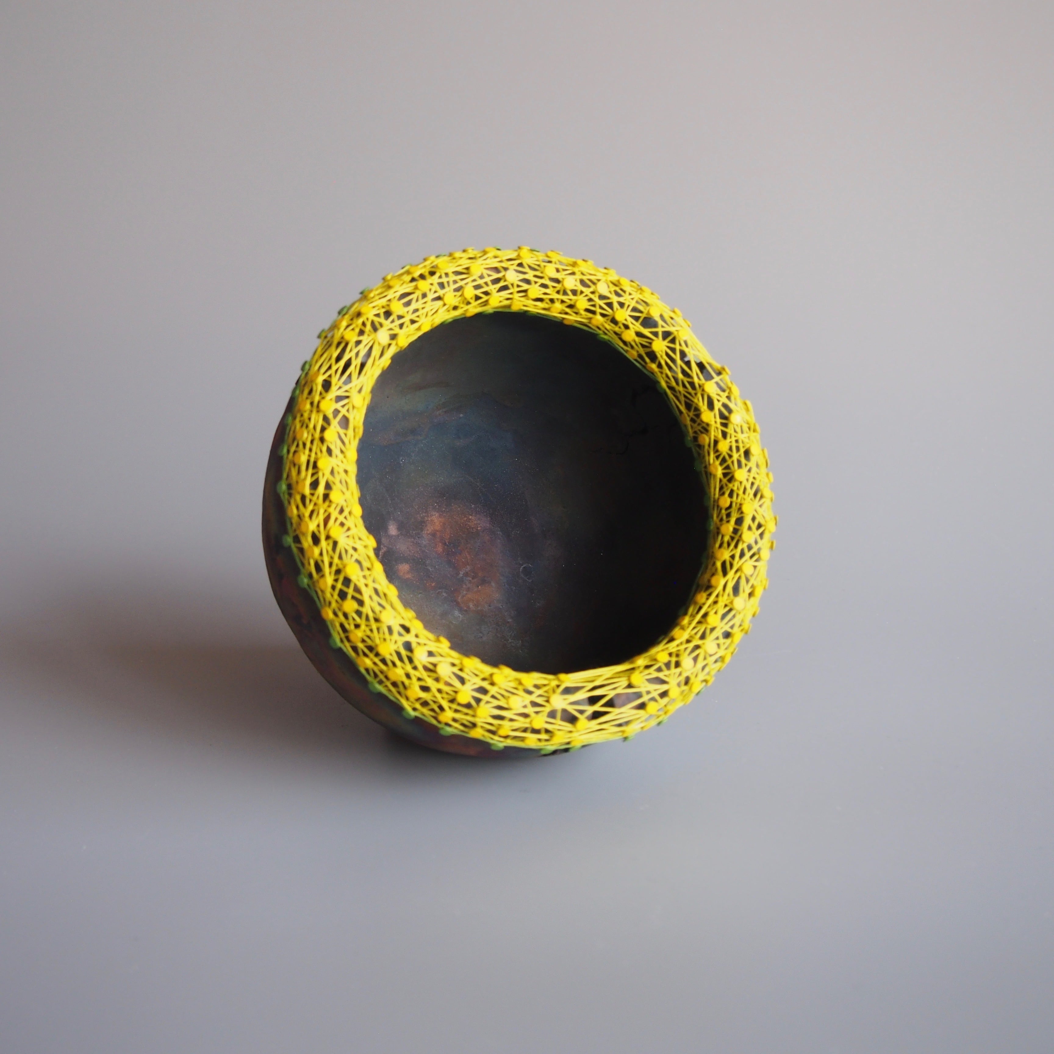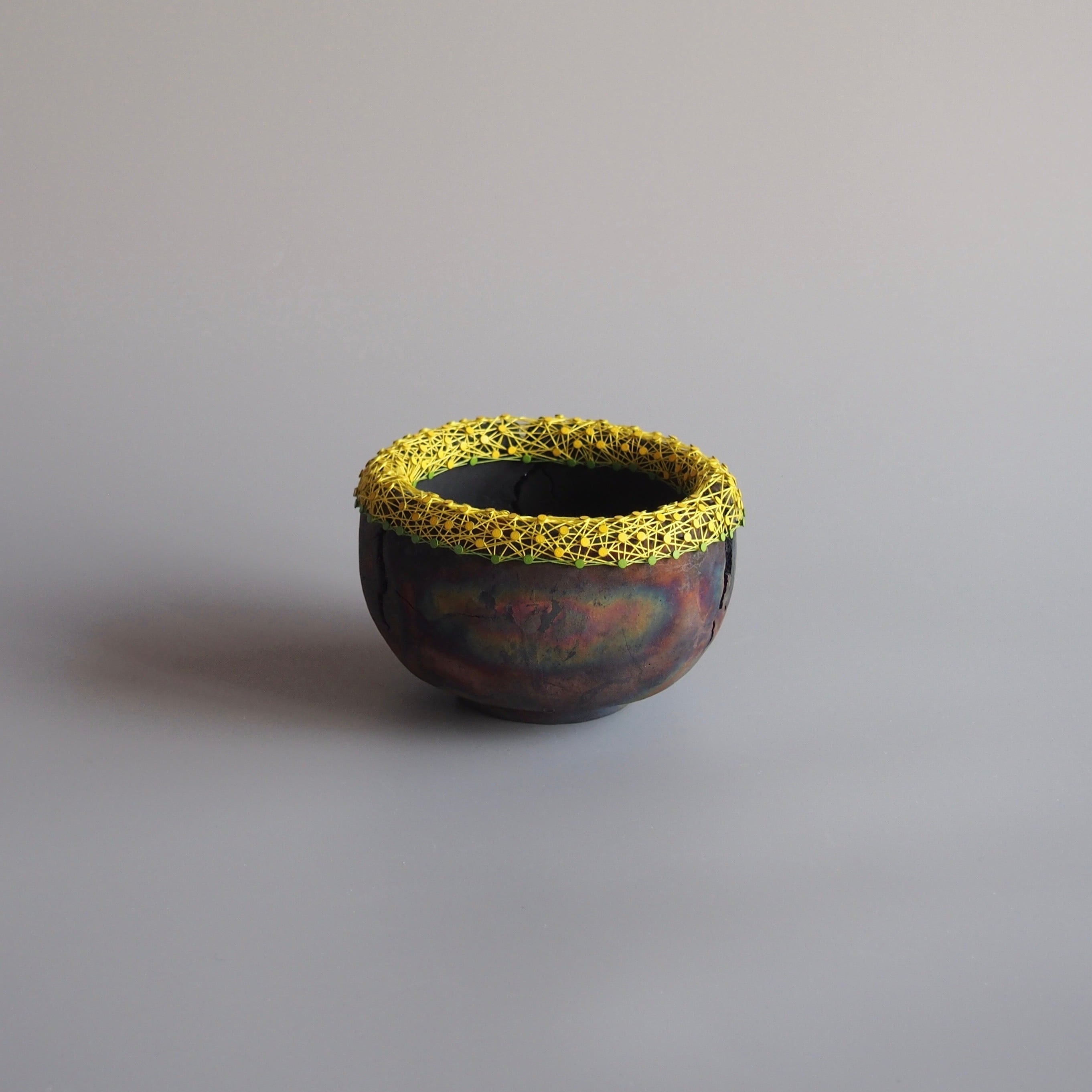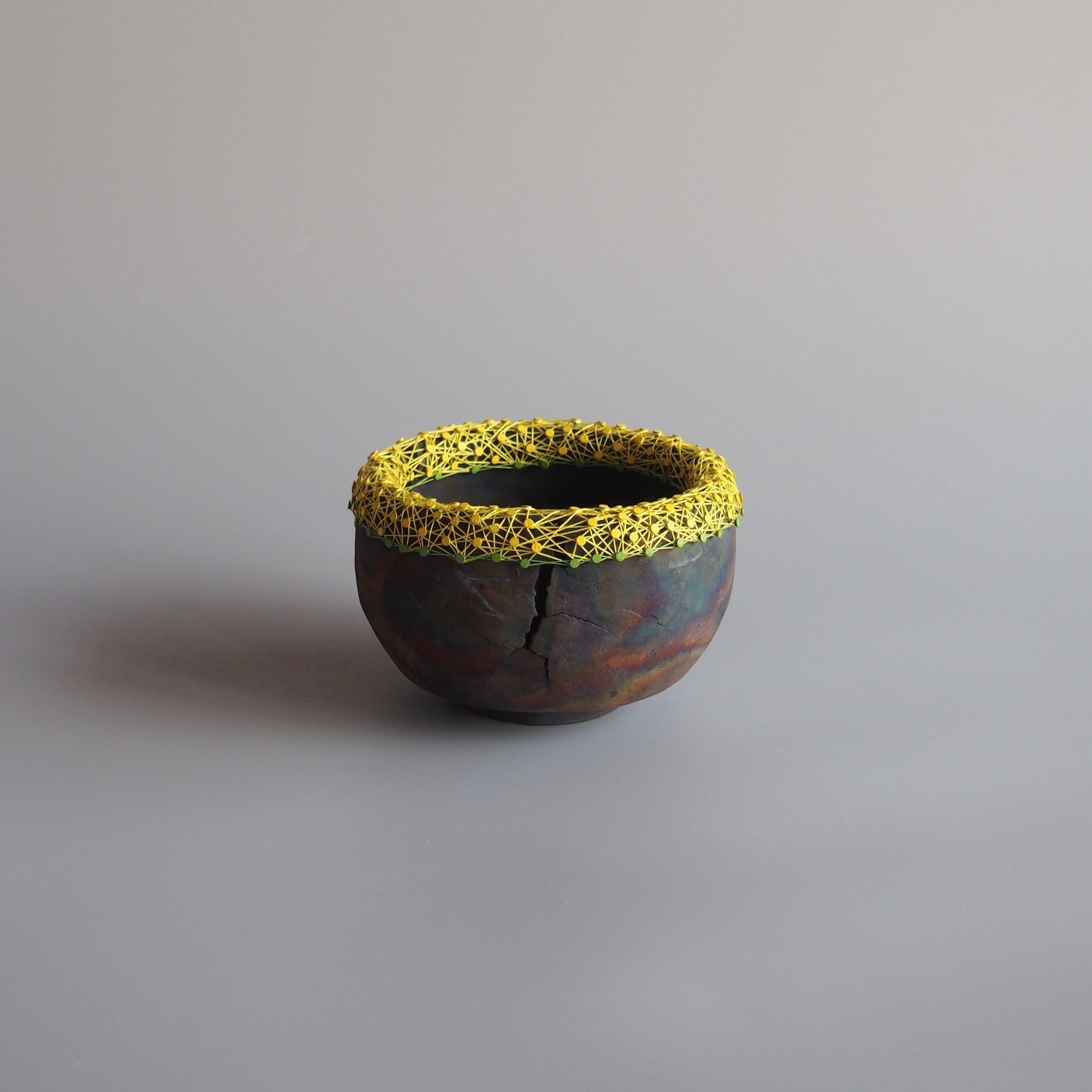 纏う、繕う、繋ぐ、縛る。器と糸の関係をどう捉えるかで作品の見え方は変わってくると思います。ご鑑賞いただく方それぞれの解釈で楽しんで頂けましたら幸いです。