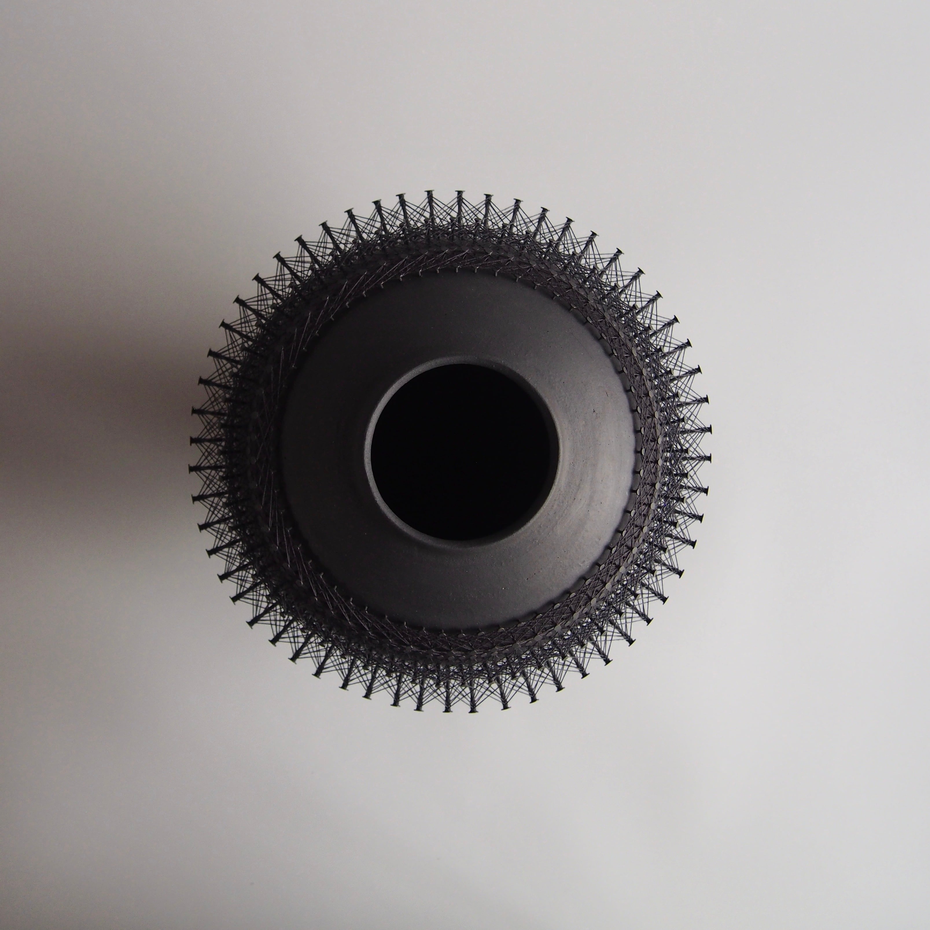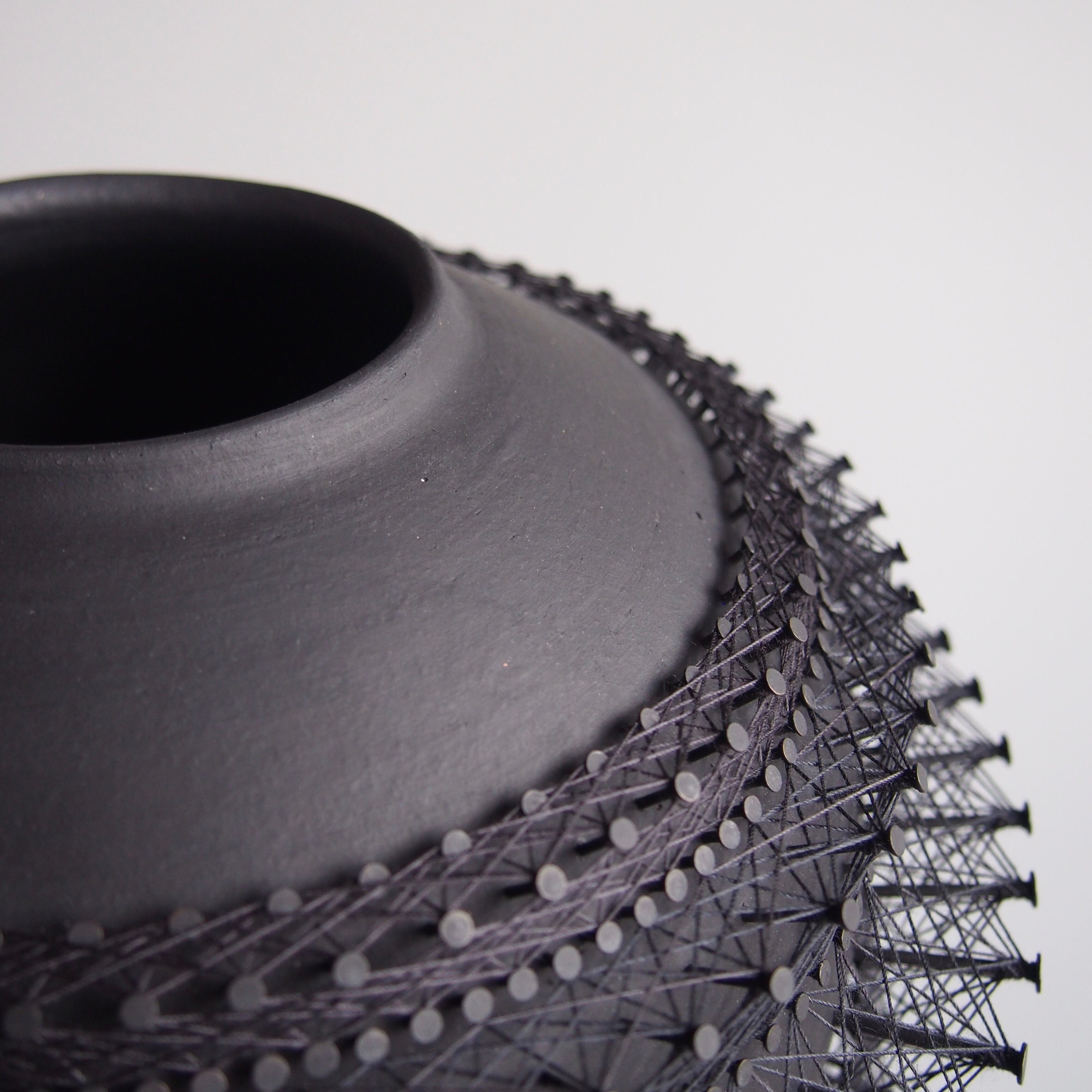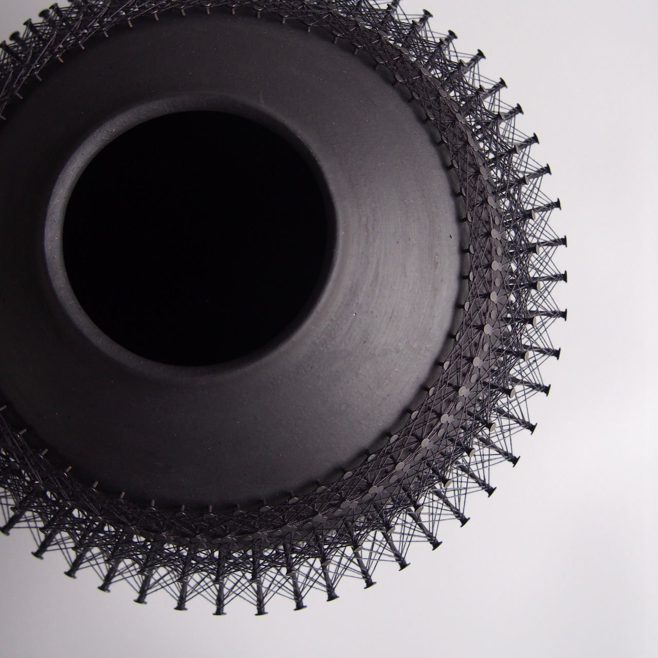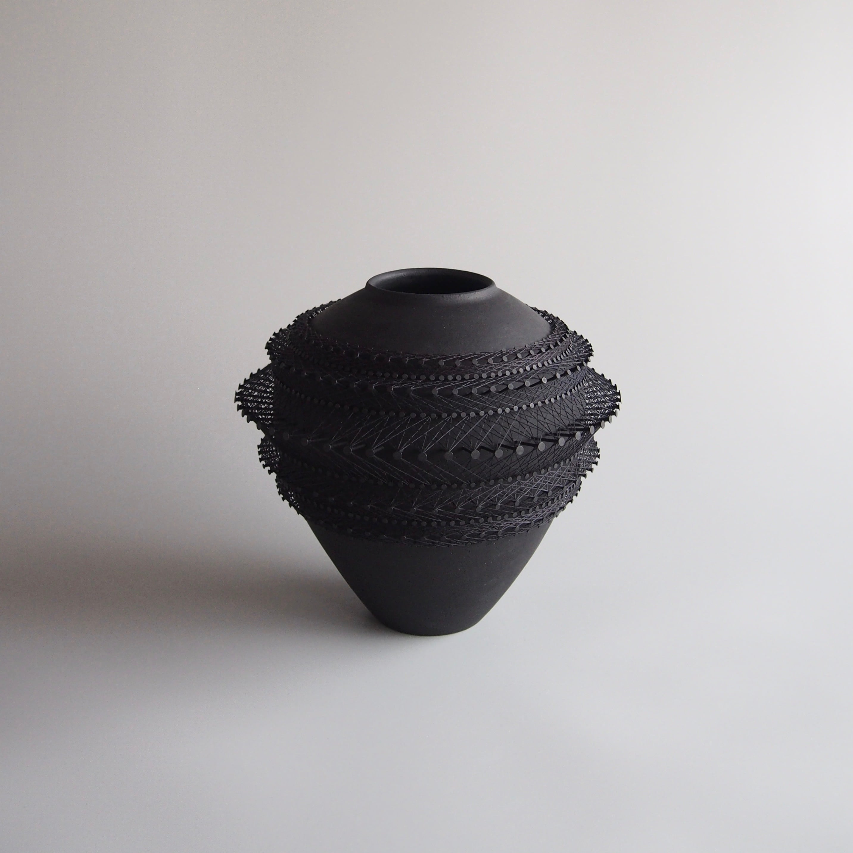 纏う、繕う、繋ぐ、縛る。器と糸の関係をどう捉えるかで作品の見え方は変わってくると思います。ご鑑賞いただく方それぞれの解釈で楽しんで頂けましたら幸いです。