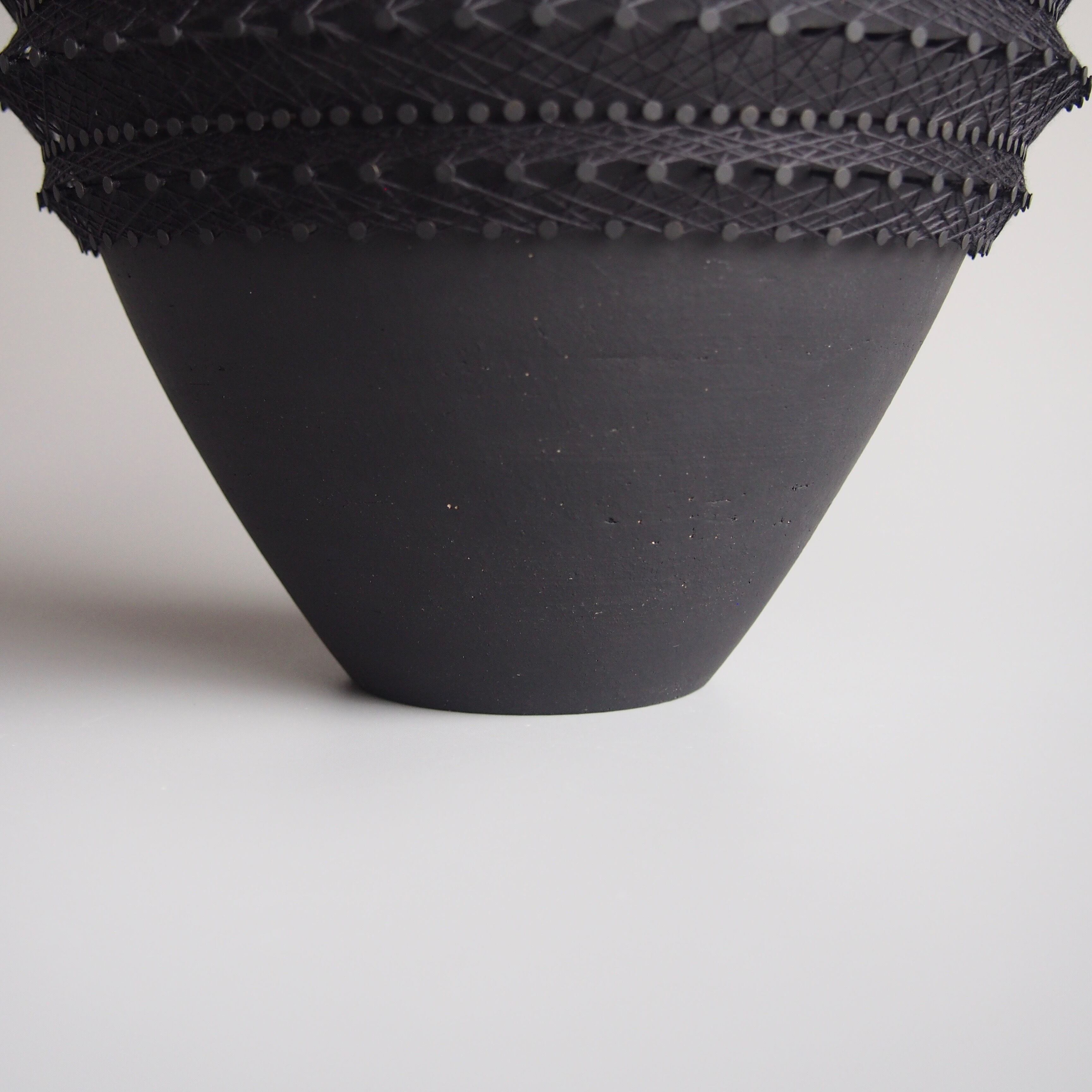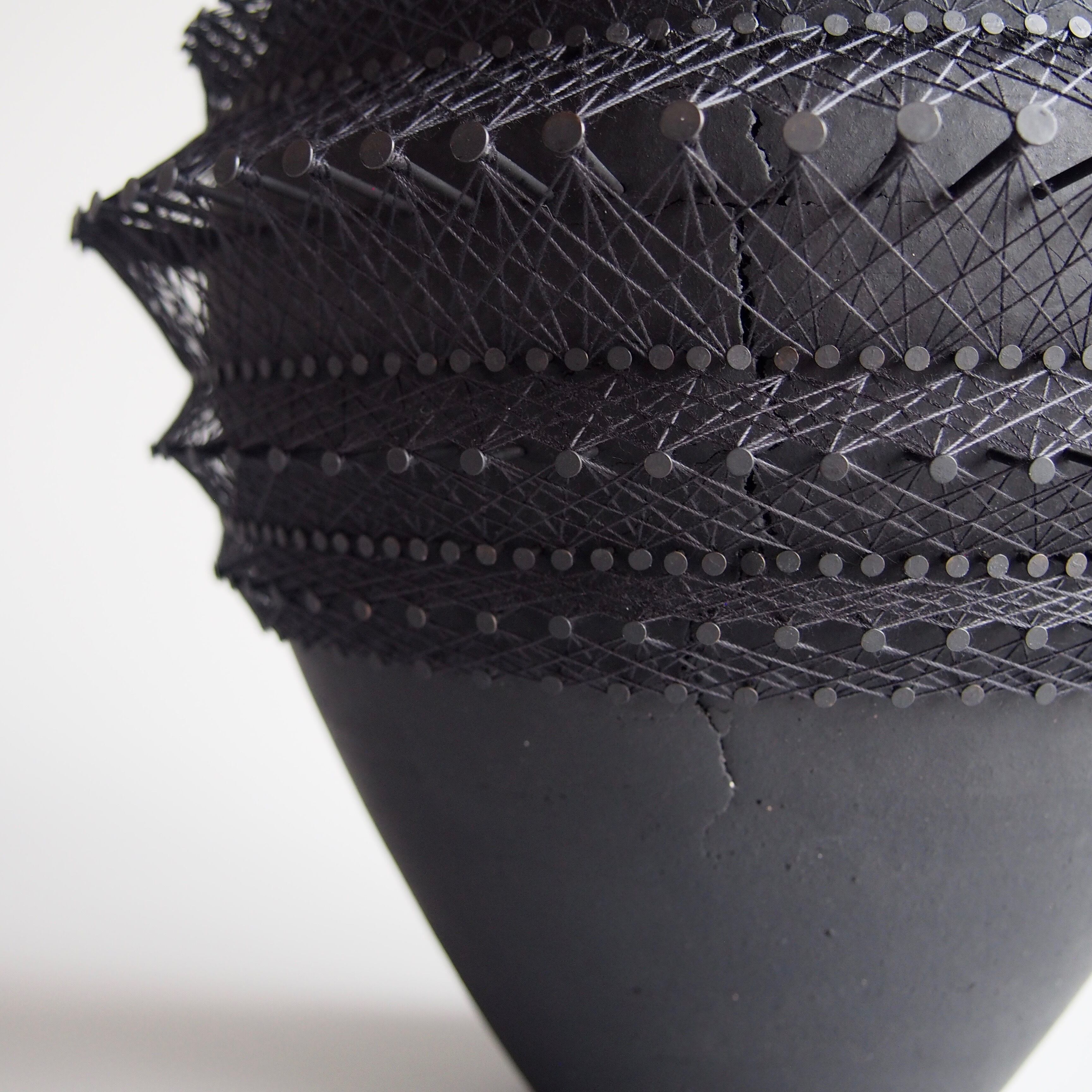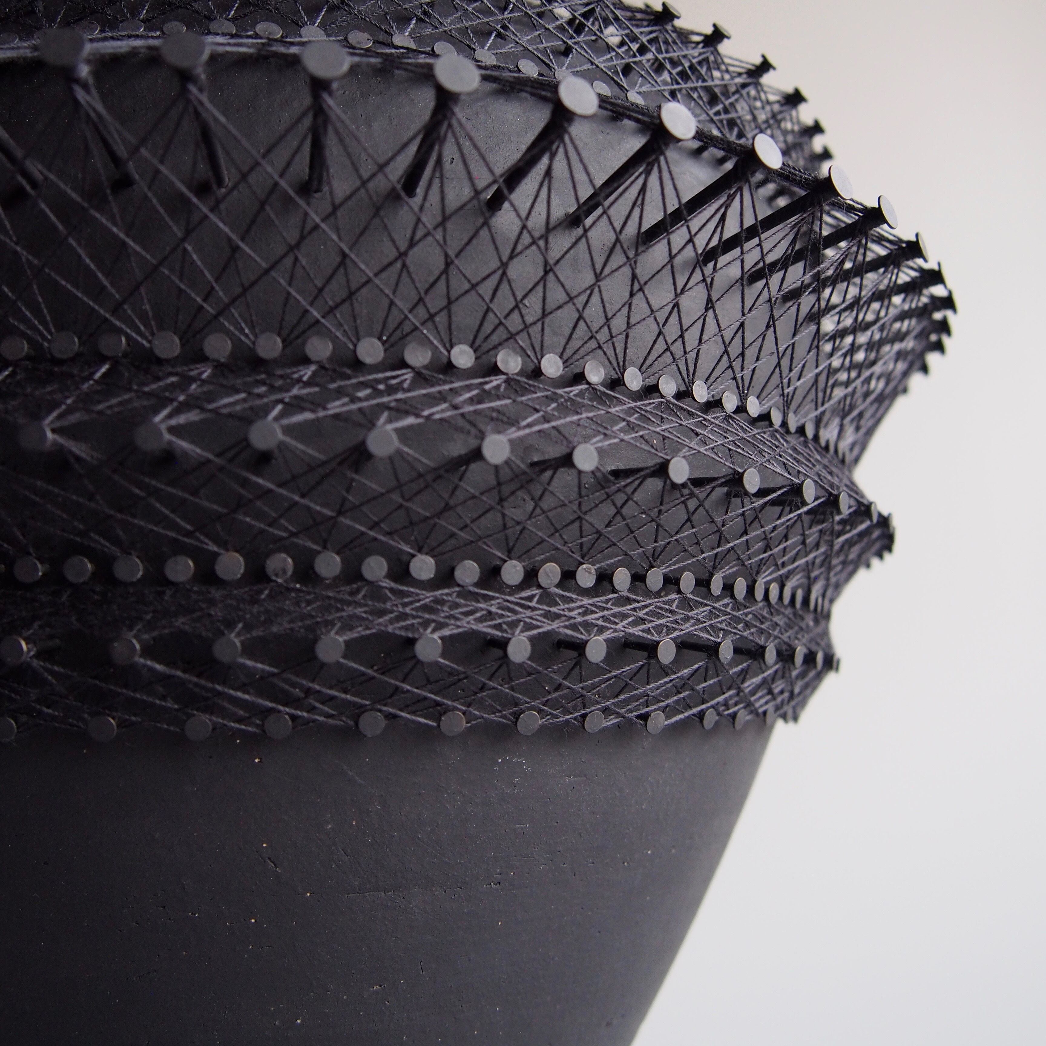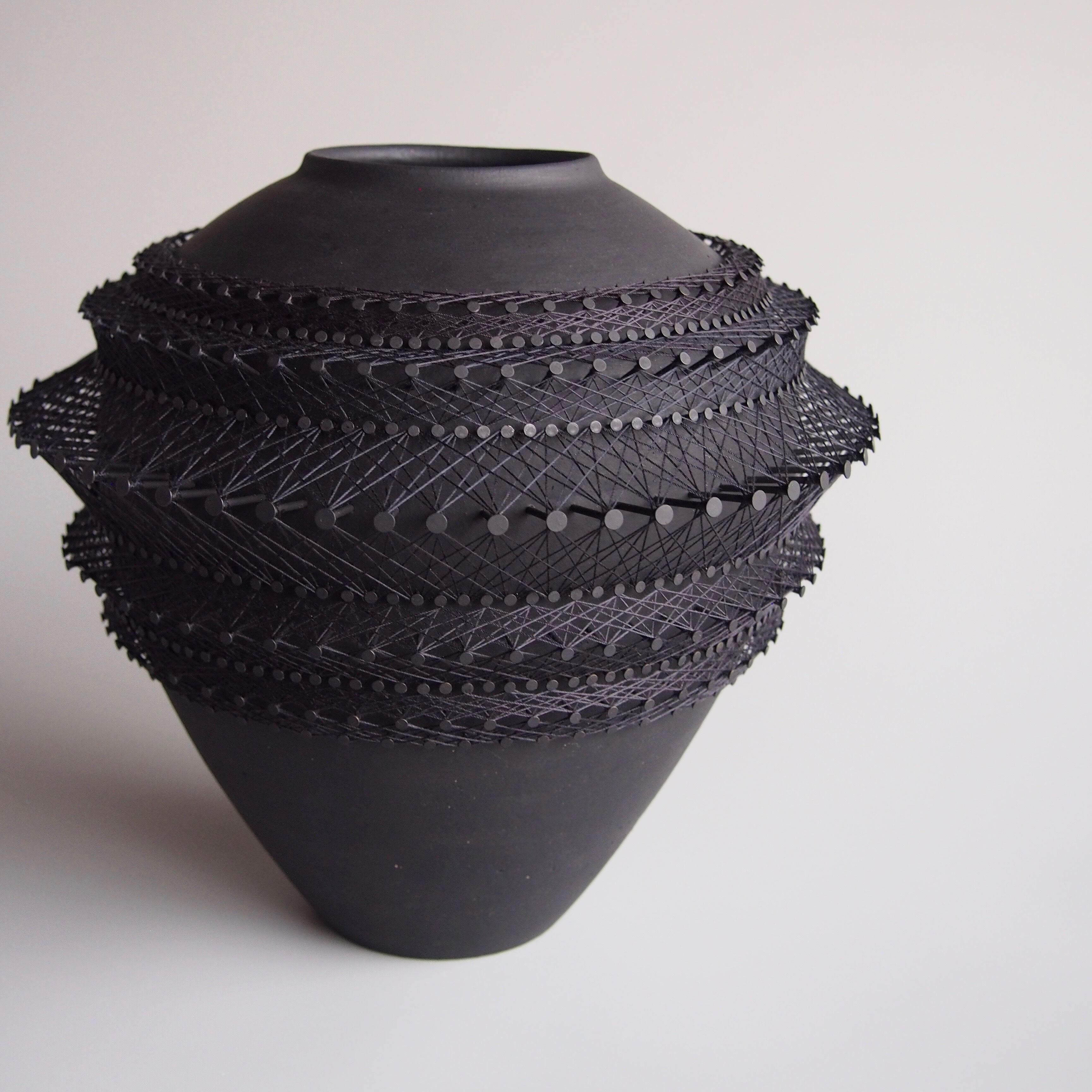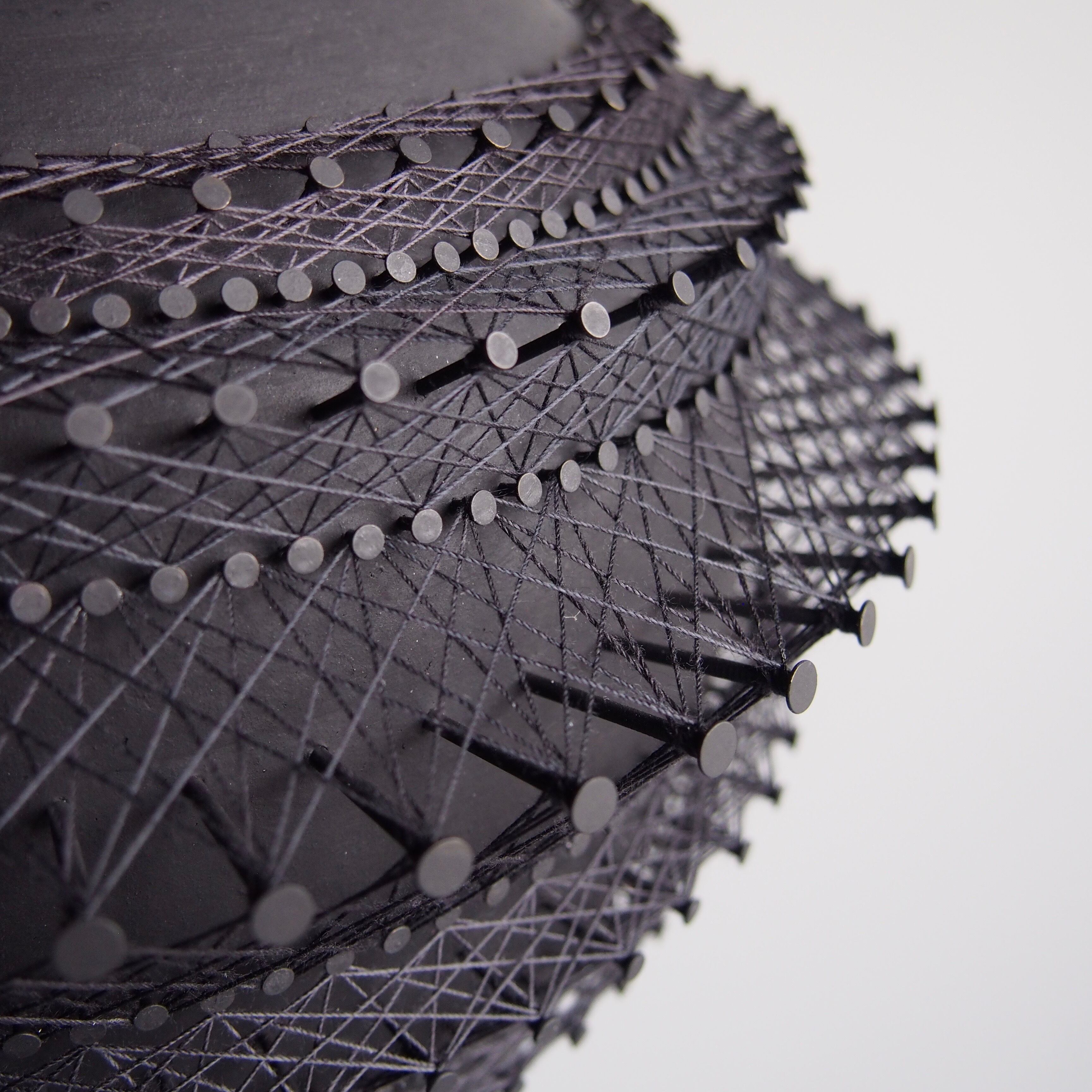 纏う、繕う、繋ぐ、縛る。器と糸の関係をどう捉えるかで作品の見え方は変わってくると思います。ご鑑賞いただく方それぞれの解釈で楽しんで頂けましたら幸いです。