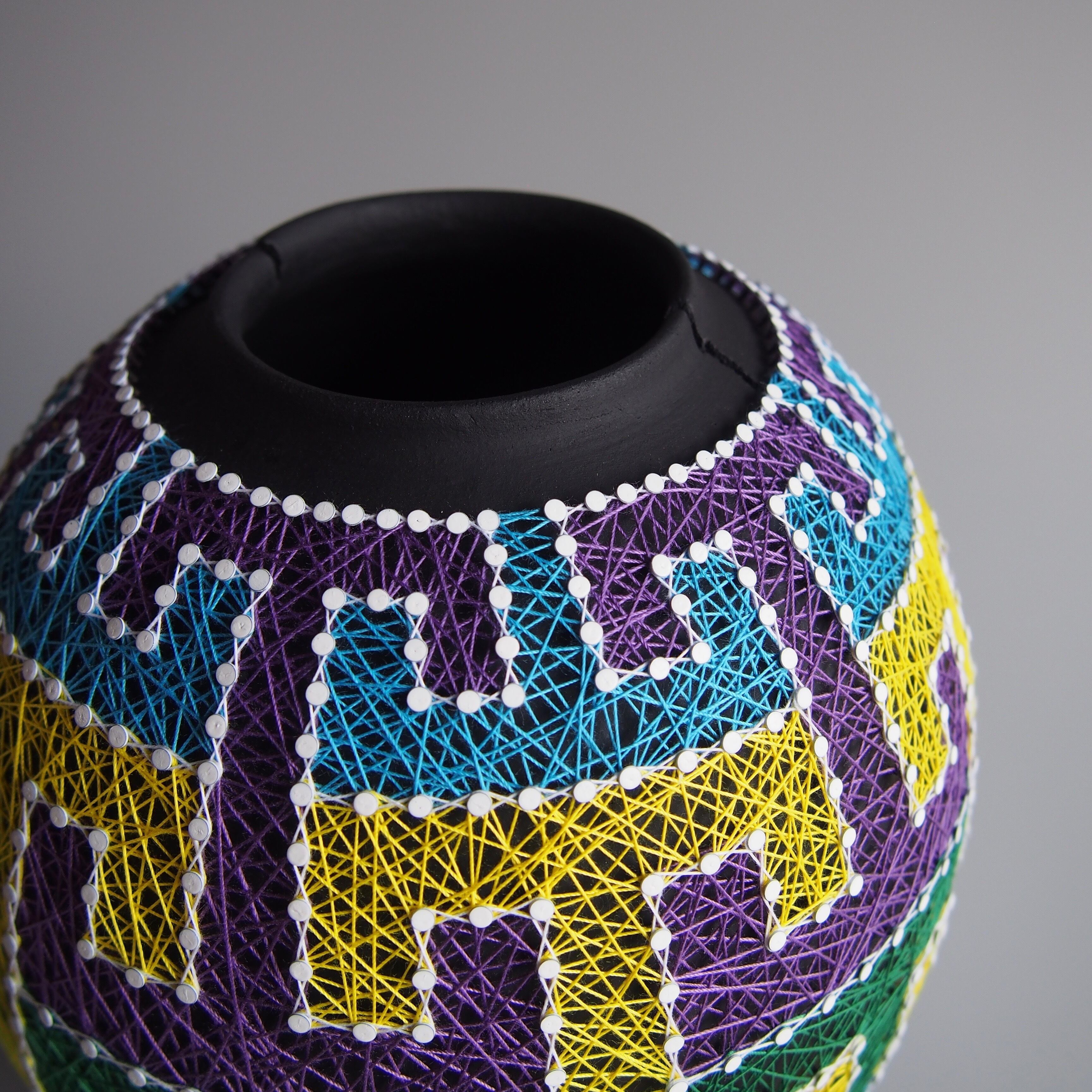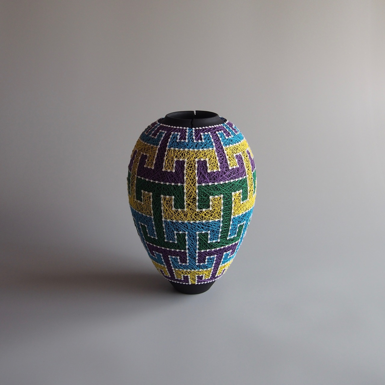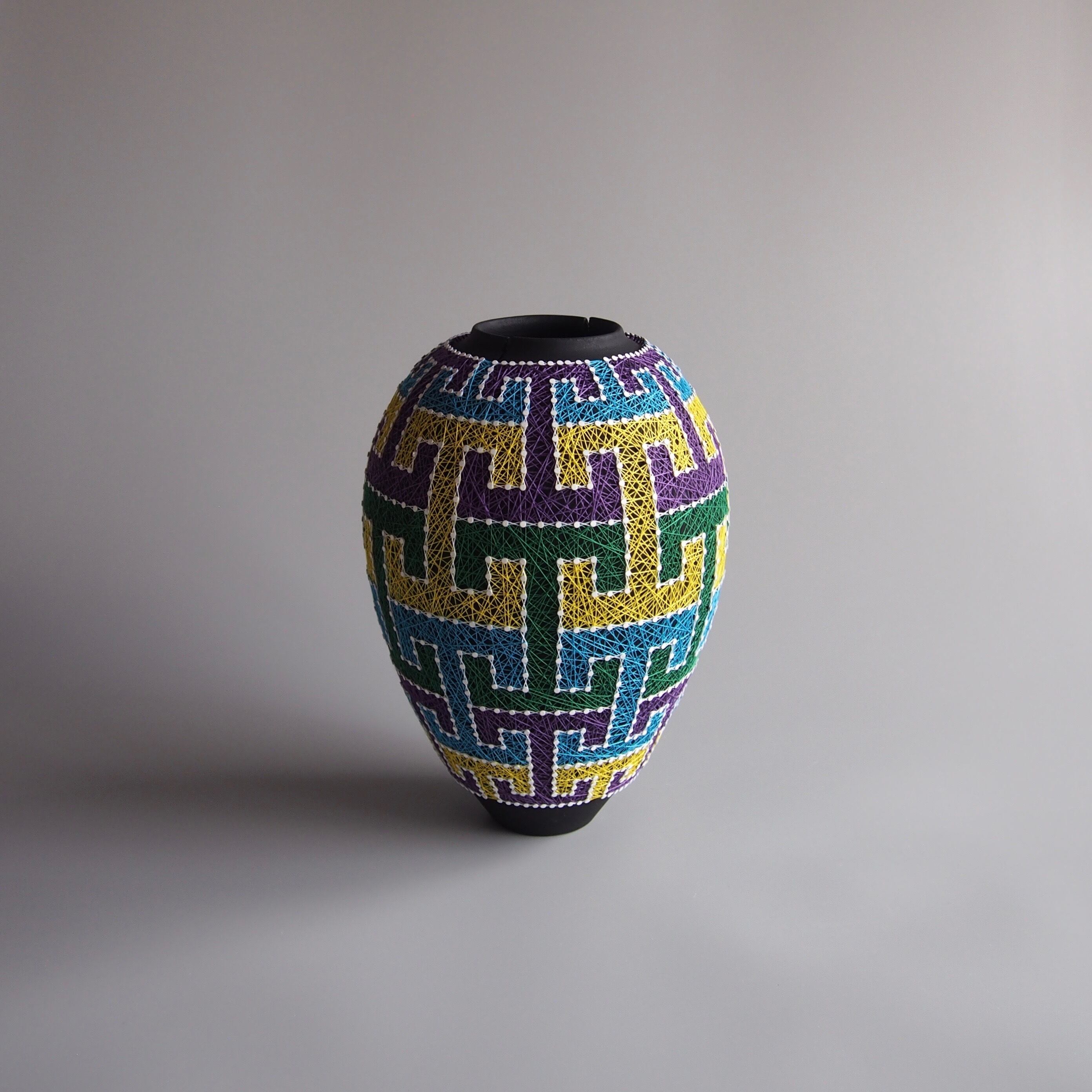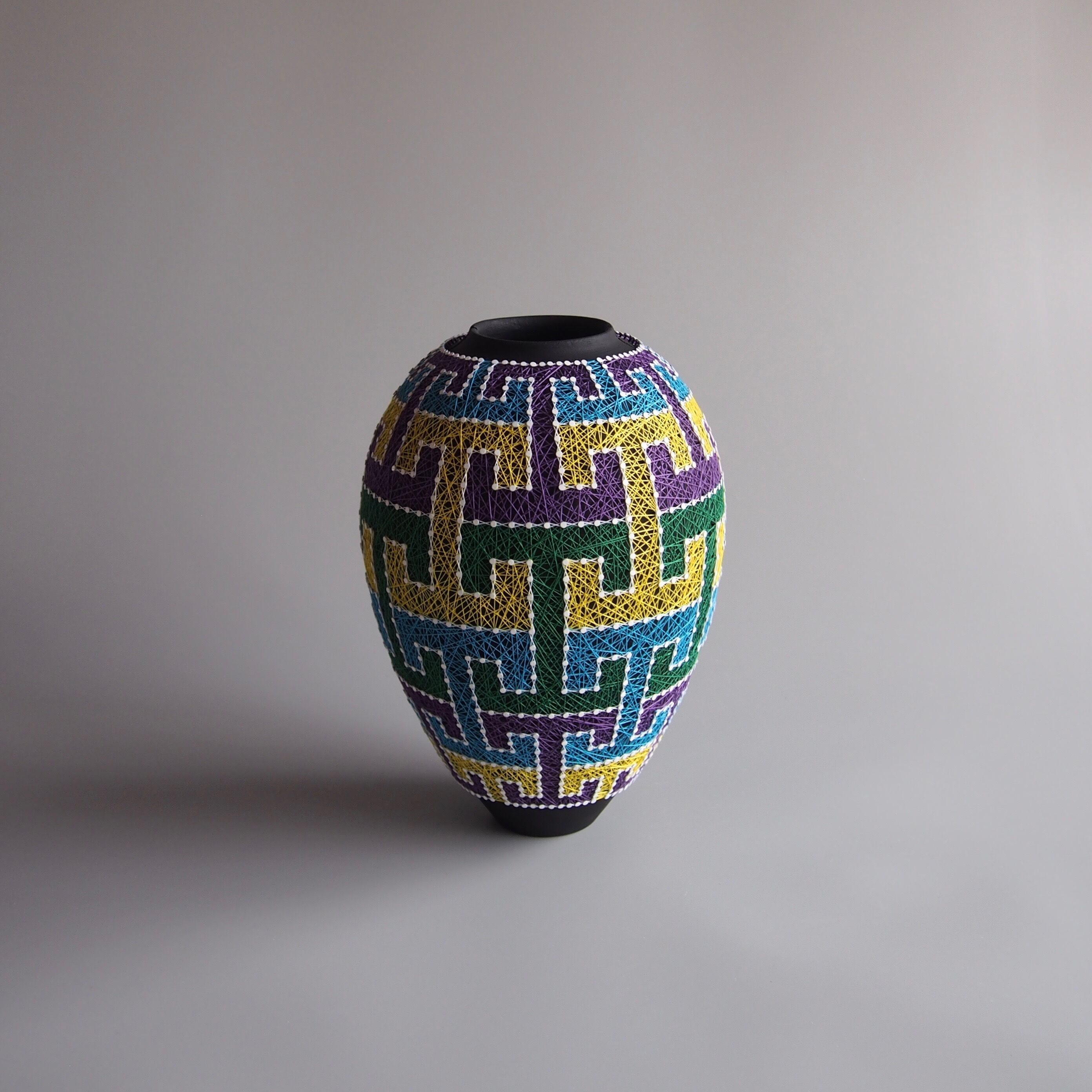 纏う、繕う、繋ぐ、縛る。器と糸の関係をどう捉えるかで作品の見え方は変わってくると思います。ご鑑賞いただく方それぞれの解釈で楽しんで頂けましたら幸いです。