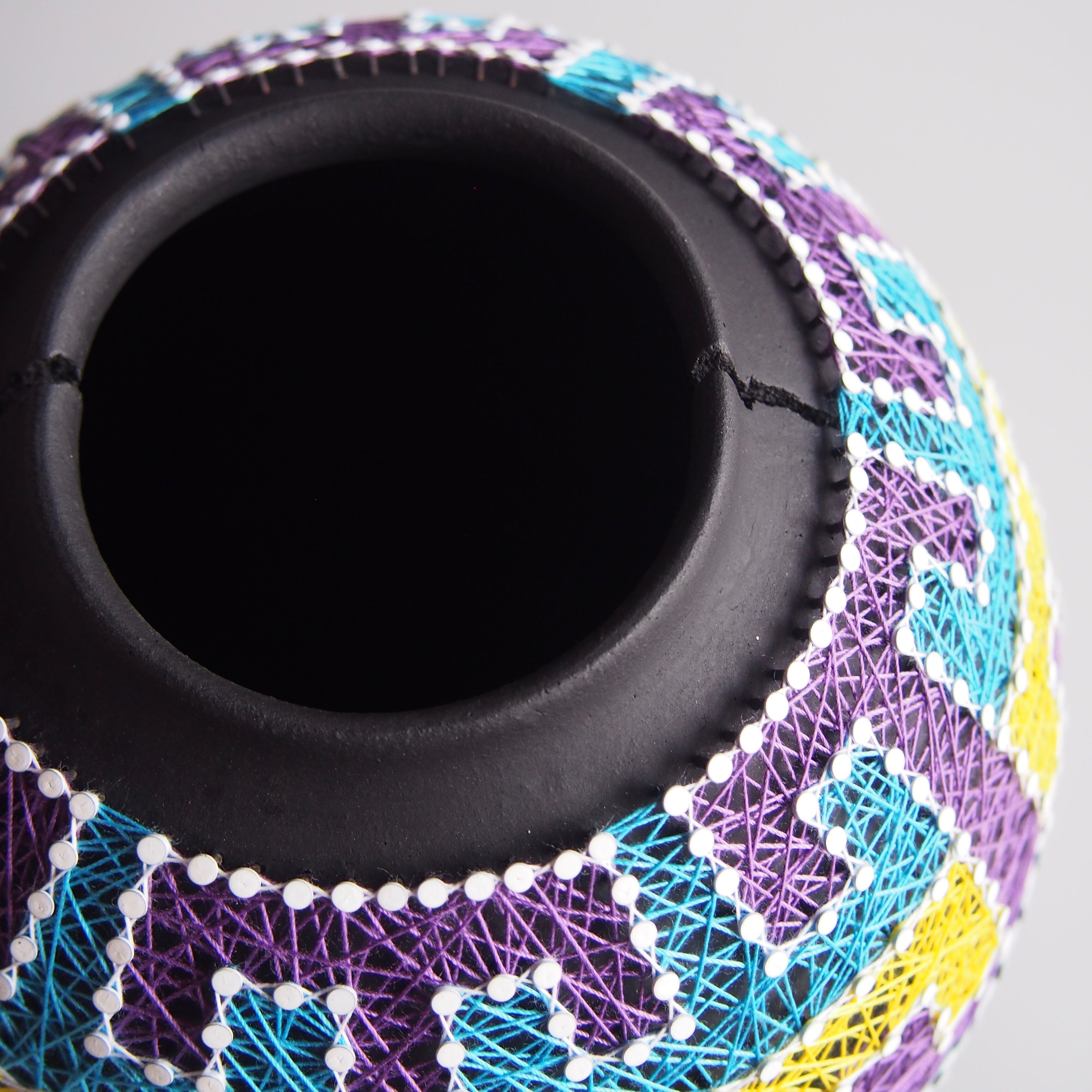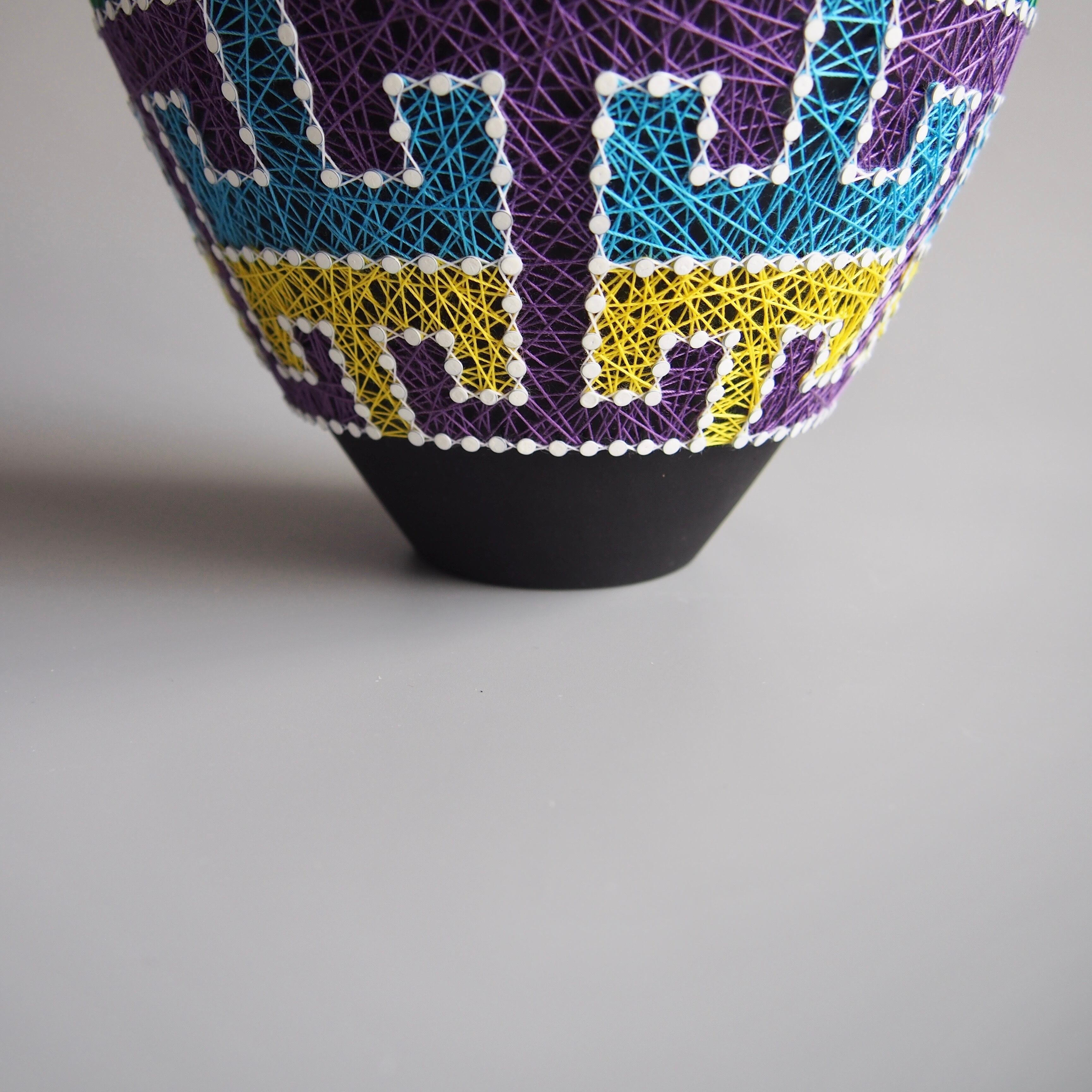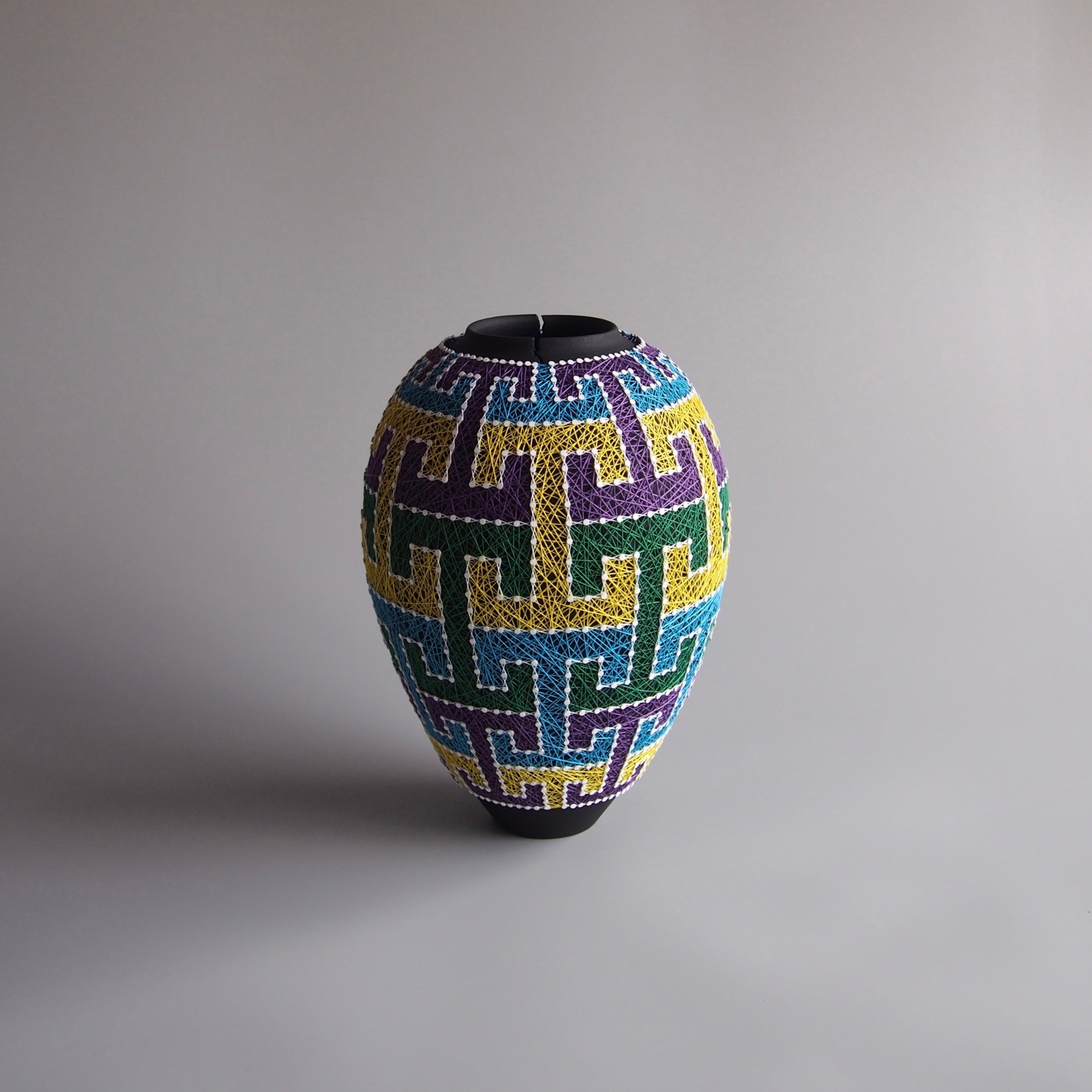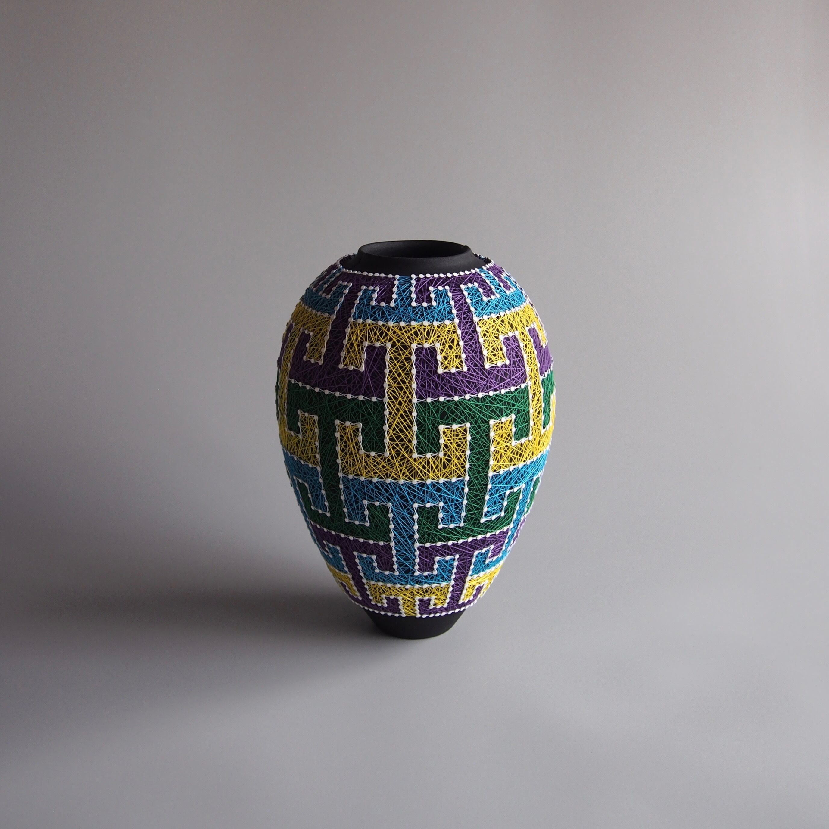 纏う、繕う、繋ぐ、縛る。器と糸の関係をどう捉えるかで作品の見え方は変わってくると思います。ご鑑賞いただく方それぞれの解釈で楽しんで頂けましたら幸いです。